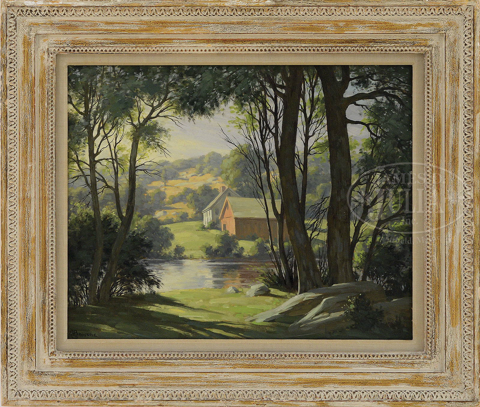 Oil on board Housed in white washed wood frame with gilt highlights and linen liner Signed lower left “BGBruestle” SIZE: 17-1/2″ x 21-1/2″. Overall: 22-3/4″ x 27″ CONDITION: Very good. 52188-7 (600-800) – Lot 1467