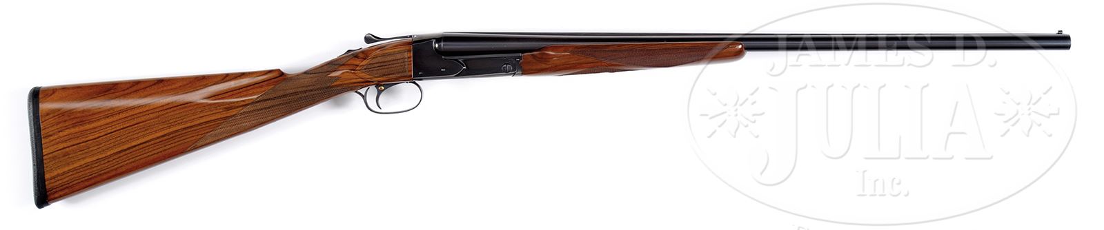 *WINCHESTER MODEL 21, 20 GAUGE.SN 26566. 26″ bbl, 2-3/4″ chambers, CHOKE: IMP CYL/MOD. Full length matted rib with twin white plastic bead sights. Single selective trigger, automatic ejectors, non-automatic safety. Straight grip buttstock, checkered in three-point pattern with checkered side panels and 14-1/2″ LOP over black “DECELERATOR” pad. Beavertail forearm checkered in diamond pattern with roll-type release. Frame is un-engraved. WEIGHT: 6 lbs, 13 oz. CONDITION: Excellent as partially restored. Bbls retain 95-97% of what appears to be their orig blue finish. Receiver retains 90-95% of what appears to be its factory blue finish with high point wear throughout. Buttstock and forearm are beautiful replacements and retain most of their custom finish with light handling marks throughout. Mechanics are excellent. Bores are bright and shiny. 49417-41 JSL208 (7,500-10,500) – Lot 1477