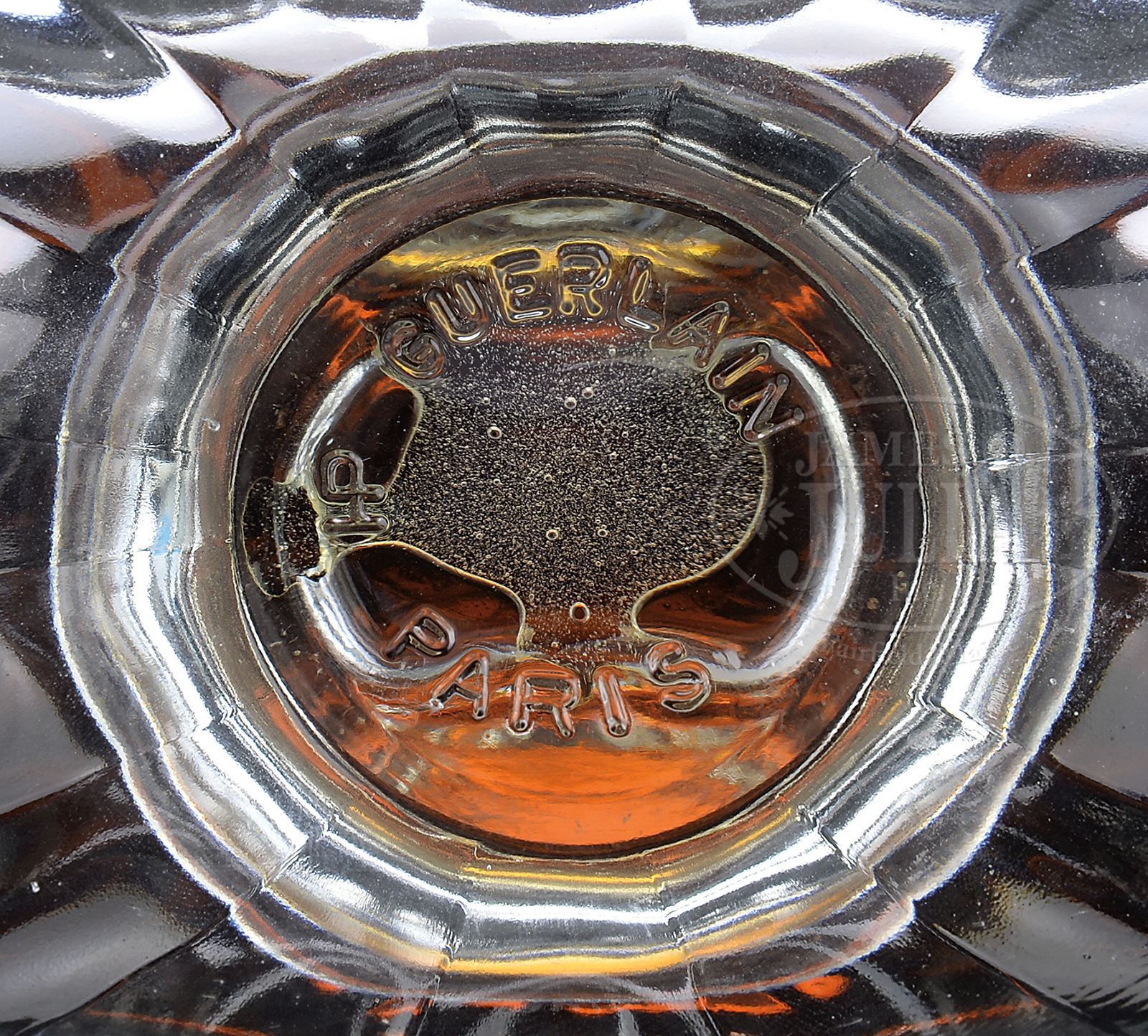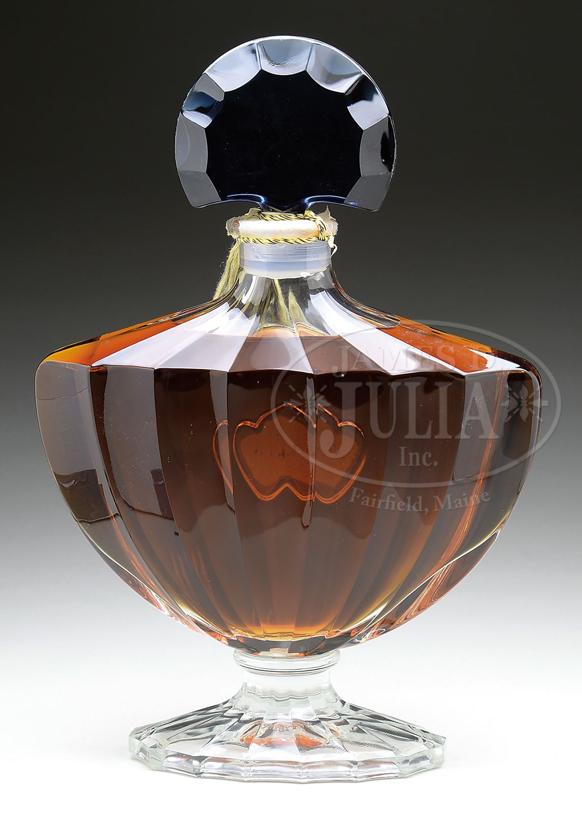 SHALIMAR GUERLAIN FACTICE.“Shalimar” by Guerlain, full factice. Signed on underside “Guerlain Paris” with gold label on front and blue fan shaped stopper. SIZE: 15-1/8″ t. CONDITION: Very good to excellent. Sealed. 50349-1 (400-600) – Lot 1482