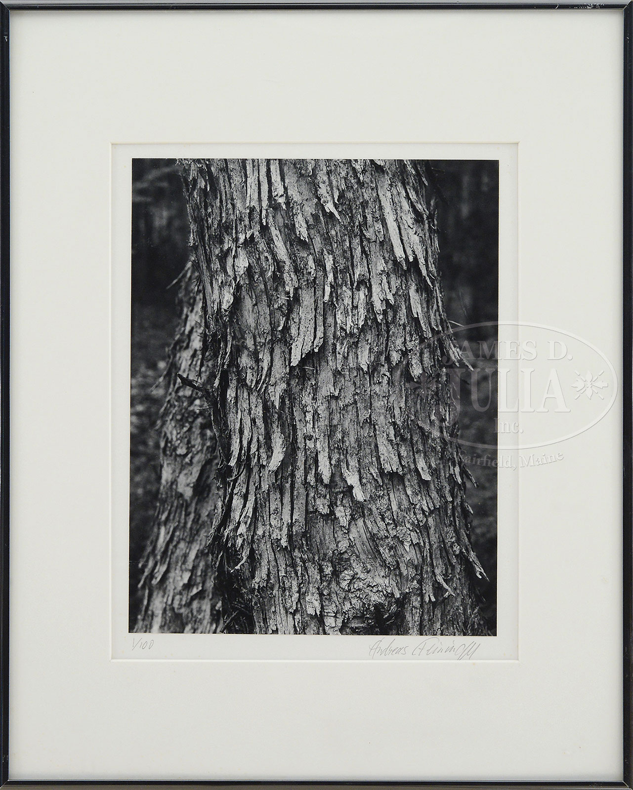 Gelatin silver prints Housed in matching black metal frames, matted under glass All signed lower right “Andreas Feininger” and numbered “1/100″ SIZE: 1) Oak Tree: 12-1/4″ x 9-1/4″. 2) Beech Tree: 10-3/4″ x 9-1/4”. 3) Shagbark Hickory: 12″ x 9-1/4″ Overall: 20-1/4″ x 16-1/4″ each CONDITION: Not examined out of frames. 1) Small tear upper left corner, lifting. 2 & 3) Very good. 51843-1 (400-600) – Lot 1517