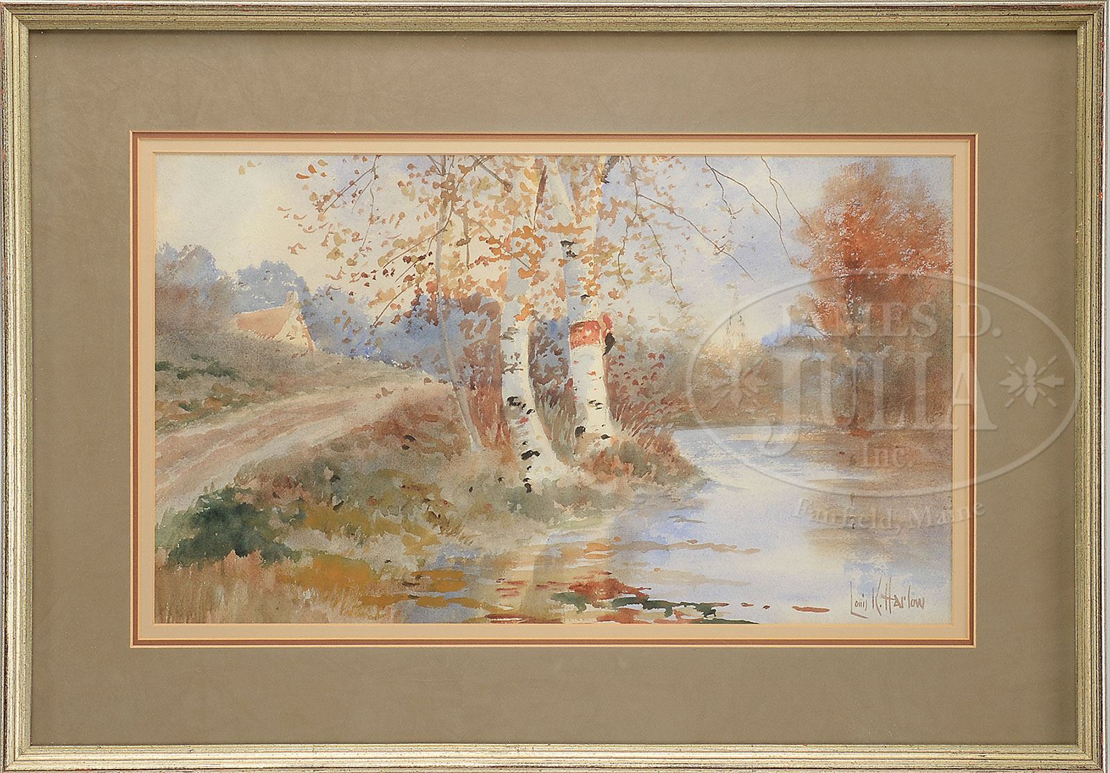 LOUIS KINNEY HARLOW (American, 1850-1913) FIVE LANDSCAPE WORKS. Watercolors Housed in modern gilt frames with mattes & glass All signed “Louis K Harlow” SIZE: Smallest to largest range: Sight: 12-1/2″ x 21-1/2″ to 13″ x 21-1/2″. Overall: 20-3/4″ x 39-1/2″ to 22-1/4″ x 30-1/2″ PROVENANCE: Massachusetts National Fire Protection Association CONDITION: Very good 7-70447 (300-500)
