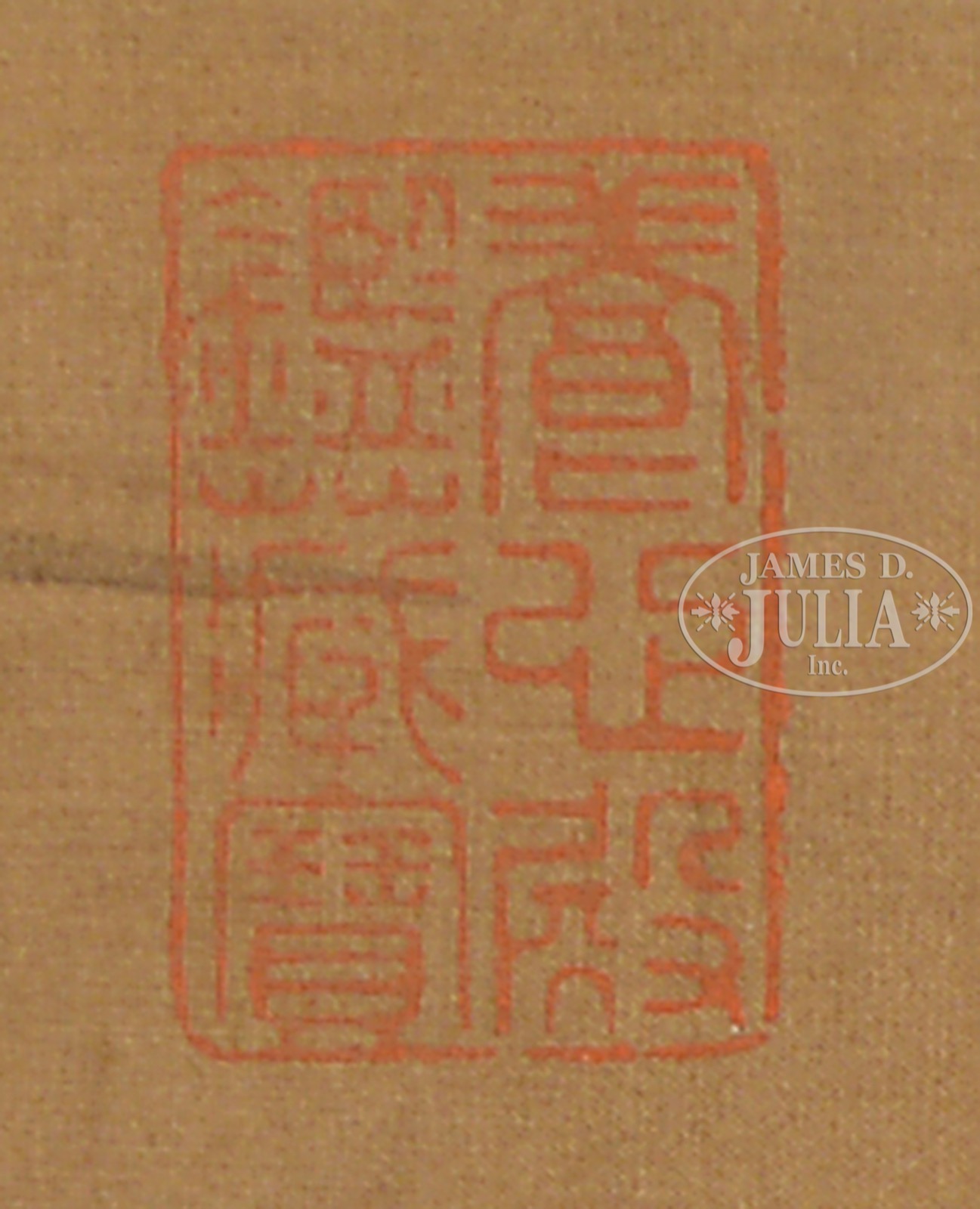 20th century, China. Ink on silk depicting a vast landscape with various figures along the water’s edge. Numerous artist’s seals and framed by two groups of script. SIZE: 250″ l x 9-3/4″ w.. CONDITION: Very good. 51573-2 (1,000-1,500) – Lot 1629E