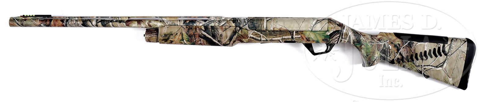*BENELLI SUPER BLACK EAGLE II.SN U394338. Cal. 12 ga. 24″ bbl. 3″ chamber. Full choke tube currently installed. Ventilated rib with steel mid bead and florescent front sight. Full pistol grip with 14-1/4″ LOP soft black serrated buttpad. Semi automatic shotgun with MAX-4 camo and a Comfortech stock. CONDITION: Excellent. Has been used but well taken care of. Ready for many more days in a turkey or duck blind. 49183-4 JSL175 (600-800) – Lot 1697