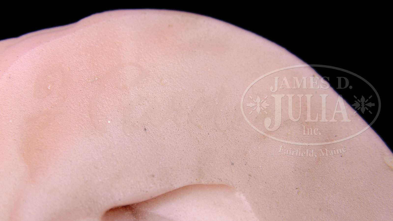 FREDERICK CARDER CIRE PERDUE HEAD OF OPHELIA.Frederick Carder cire perdue cast glass figure of a woman’s head is done in mottled pink glass and is signed on the underside “F Carder”. SIZE: 4″ t. PROVENANCE: Skinner, October 24, 1998, Lot 101. CONDITION: Very good to excellent. 51967-1 (12,000-16,000) – Lot 1753