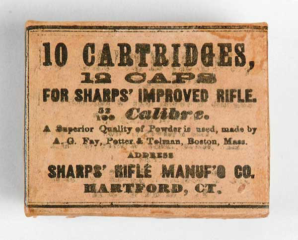 ONE BOX SHARPS .52 CAL LINEN CARTRIDGES. Made by A.G. Fay, Potter & Tolman. CONDITION: Fine. 4-47332-100 FS540 (400-650)