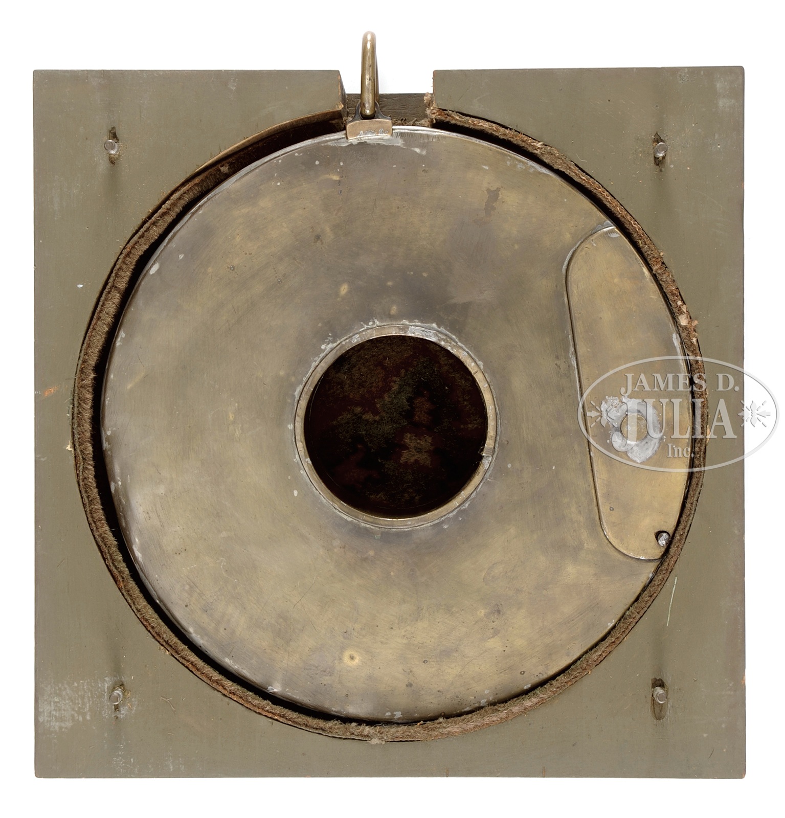 LOT OF TWO RARE ACCELS FEED DRUMS FOR GATLING GUNS EQUIPPED WITH THE ACCELS FEED CHUTE.SN NSN. Cal. 45-70. Lot of two identical all brass Accels feed drums designed for the model 1883 and in use on other Gatling guns until completely replaced by the Bruce feed in 1898. Although these drums were effective feed mechanisms they were not well suited to military application. Unless they were scrupulously maintained and protected from any dents they would not feed properly. One protective transit box for the Accles feed drum is included. CONDITION: Very fine, all orig. Overall retain a medium brass patina. Mechanics are fine. Box is sound. 49634-2 JR234 (8,000-15,000) – Lot 2066