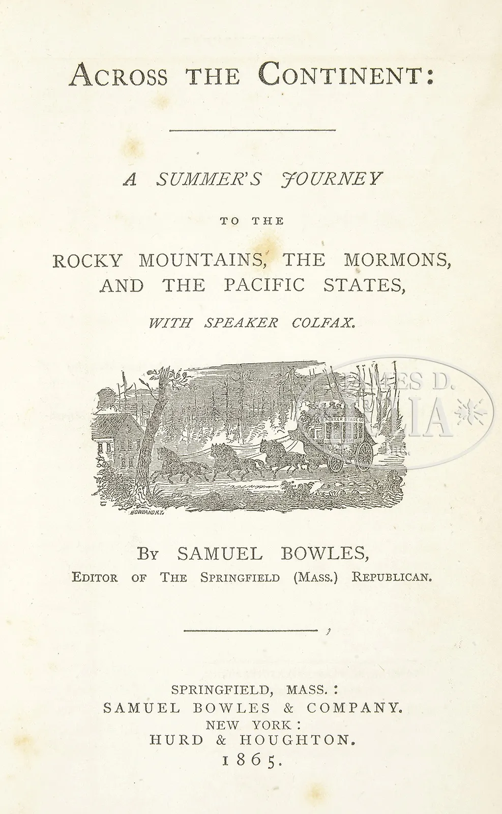 RARE AND EXTREMELY FINE COLT CIVILIAN MODEL 1860 ARMY PERCUSSION REVOLVER WITH MATCHING SHOULDER STOCK INSCRIBED TO SAMUEL BOWLES FOR USE DURING HIS REMARKABLE 1865 JOURNEY TO THE WEST.SN 151313. Cal. 44. Blue & color case hardened with 8″ rnd bbl, German silver front sight and 1-line New-York U.S. America address. Left side of frame is marked “COLTS PATENT” and left shoulder of trigger guard is marked “44 CAL”. It has usual 6-shot rebated cyl with Ormsby Naval Battle scene roll marking and all 6 crisp safety pins are present. Frame is 4-screw type cut for shoulder stock with proper long flat head hammer screw and a stock dimple in butt strap. 4- screw frames utilized in this late serial range are quite rare and few examples are known and several famous examples in this serial range including the “Eustace Barron” which is pictured in Wilson & Sutherland’s The Book of Colt Firearms. The silver plated brass trigger guard & blued steel back strap contain a varnished 1-pc walnut grip serial numbered to this revolver. SNs were observed on bbl lug, frame, trigger guard & butt strap with the last five digits of SN on wedge and last four digits on cyl & cyl spindle. The SN on frame, trigger guard & backstrap are accompanied by a small “S”, indicating that the frame was to be cut for shoulder stock. Pistol back strap and stock frontstrap are engraved in Colt factory style script “SAML BOWLS / SPRINGFIELD MASS”. Accompanied by matching orig Colt 1860 Army stock with brass yoke & buttplate bearing the SN “151313” on the yoke and “128032” on buttplate followed by small “S”. Last three digits of SN, “313”, are inked under the buttstock lower tang. Though the SN on buttplate is not matching; this seems to be a factory trend. Note that on these same floors lot 2132, October 2011, a similar stock SN 150722 on yoke and 128033 on butt which was accompanied by reference from noted Colt authority, collector & dealer, the late Alan S. Kelley wherein Colt stocks with mismatched numbers, “This discrepancy common on shoulder stocks of the period.”. Stock has a beautiful bright varnish finish with a lanyard stud & ring in bottom tang. It would be difficult to upgrade this particular example as it retains most all of its bright orig finish and appears unfired plus it has stellar collection history. Samuel Bowles was an editor publisher in Springfield, Massachusetts printing influential newspapers and journals throughout his lifetime. There are several books written on his life containing many of his numerous articles and journal entries. There is a 500 pg volume Across The Continent published in 1865 transcribed from his journals and letters of a summer journey he made starting in Atchison, Kansas in May 1865 transversing the West with specific study of the Mormons, including meetings with Brigham Young and other church elders, views on polygamy, interviews with Mormon wives, etc. This trip Mr. Bowles party was led by Schuyler Colfax, Speaker of the House of Representatives, was initially set to visit the mining regions of Colorado, Nevada, and California, though it seems most of the time was in study of the Mormon culture, people, topography of Salt Lake area, etc. This amazing book, which an orig 1st edition accompanies this lot, was annotated and edited from Bowles’ letters, diaries and journals that reads quite-like an adventure that could make a good plot for a movie today. Bowles’ party had access to the best railroads, and coach service, so crossing America was much easier now after the Civil War no wonder so many soldiers went West. Though every comfort would be afforded, this group of travelers, with important politicians and other journalists, Bowles does mention “There are rifles and revolvers for Indians and game…with the news that (Overland Stage) had been attacked by the Indians..halfway to Fort Kearney. It is the first raid of red-skins this season…” This particular Colt, based on SN, was made in late 1864, just in time for this journey. I see little doubt that this weapon was purchased with this trip in mind, though based on its near new condition it probably wouldn’t have left its box. PROVENANCE: Samuel Bowles, 1865; Family of a Boston Judge; Robert Tompkins, Sheffield, Mass, 1951; Herb Glass Sr., Bullville, NY; Gerald Fox; Herbert Green, 1955; Al Kelly; The Esteemed Collection of Steve Ardia. CONDITION: Extremely fine, all matching including wedge, cyl, grips & shoulder stock with noted known discrepancy on Colt buttplates. Bbl retains about 99% strong glossy orig factory blue with light muzzle edge wear and a few scattered scratches and two about 1″ thin scuffs, one on right side of bbl just rear of latch and the other on left side of bbl just forward of wedge. Rammer & handle retain most of their orig case colors with balance, especially forward on arm, silver/gray. Frame & hammer retain brilliant case colors on sides with recoil shields turning dark. Cyl retains 97-98% strong bright blue overall with thinning in rebated area. Virtually all of the rolled Ormsby Naval battle scene is crisp and discernible. Chambers are crisp & clean with thin orig blue. Trigger guard retains about 80% of silver plating with reductions being on grip strap where held, which is mixed silver and a light brass patina. Back strap & butt strap retain about 98% glossy orig blue. Grip is sound and well fit, retaining virtually all orig varnish except where in contact with yoke, which has indented an area on each side of grip about 1″ wide where there is no finish and slight reduction of surface. Mechanics are crisp, bright shiny bore with lots of orig blue. Stock yoke retains 95% plus orig silver plating with one large reduction on right yoke where it abuts gun and several other small freckles of missing finish. Buttplate retains about 80% orig silver finish with reductions at bottom. Stock has a few scattered very light blemishes and retains virtually all o