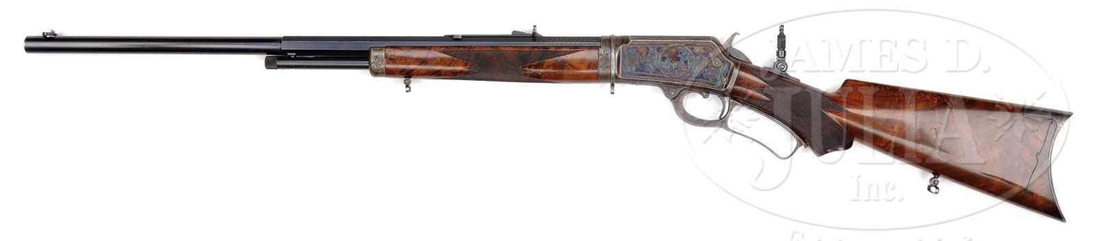 VERY RARE SPECIAL ORDER DELUXE ENGRAVED TAKEDOWN MARLIN MODEL 1889 LEVER ACTION RIFLE.