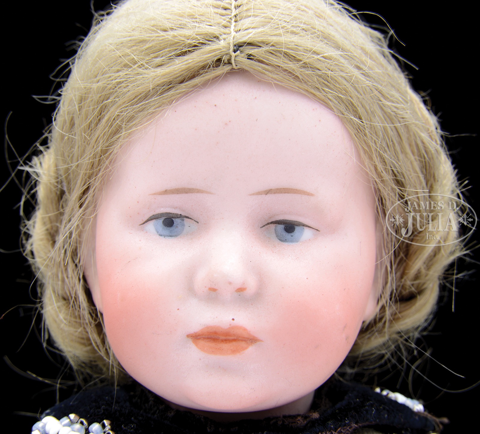 10″ K*R 101 “MARIE” CHARACTER DOLL.Direct from the original family this petite German character is in as found, untouched all original condition. Marked on the rear of the head “K*R 101 26”, she is dressed in her original provincial clothing retaining her tosca colored braided wig, and even her felt shoes marked “Germany” along with her purple socks. One could not ask for a better package than this character child. Beautiful pale bisque with intaglio blue eyes on the proper composition body (loosely strung). She is virtually ready to place in your cabinet. SIZE: 10″ t. CONDITION: As stated above. 49024-3 (800-1,200) – Lot 2158 Auction: Advertising, Toy & Doll - Spring 2015 Please Note: All prices include the hammer price plus the buyer’s premium, which is paid by the buyer as part of the purchase price. The prices noted here after the auction are considered unofficial and do not become official until after the 46th day. |