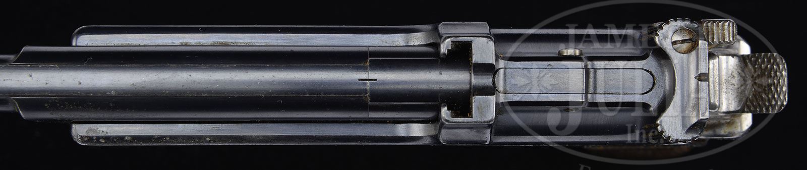 *◊ SCARCE STEYR MANNLICHER M1905, POCKET MODEL: SHORT BARREL, SHORT GRIP.SN 1803. Cal. 7.65mm. Pocket model M1905 with a 4-3/4″ bbl having drift adjustable front sight and fixed rear sight. Narrow trigger as often found in early production. Full SN is repeated on the left side of bbl, chamber, and applied horizontally on the bottom of the sideplate, just forward of the serrations. The sideplate has a split address: the left side is marked “WAFFENFABRIK / STEYR”; the right side is marked “SYSTEM / MANNLICHER”. A small oval proof, significance unknown, is on the left side of the bbl and repeated near bottom of the backstrap. Major parts are rust blued with the safety, hammer, trigger, and sideplate release remaining in-the-white. Screws are strawed. Removing the sideplate shows all matching small parts. Each of the grips, measuring 3-3/8″ in length, is factory matched with a “03″. PROVENANCE: Collection of Dr. Geoffrey Sturgess. CONDITION: Approx 90% orig rust blue with patchy oxidation on left muzzle and forward portion of left slide. Minimal freckling on front & backstrap. Small parts in-the-white with minor staining and toning. Grips with orig varnish and deeply cut serrations. Near mirror bore with strong rifling and perfect manual mechanics. Mannlicher made very few pocket M1905s, a real find for the serious collector. 4-52226 (2,000-3,000) – Lot 2219