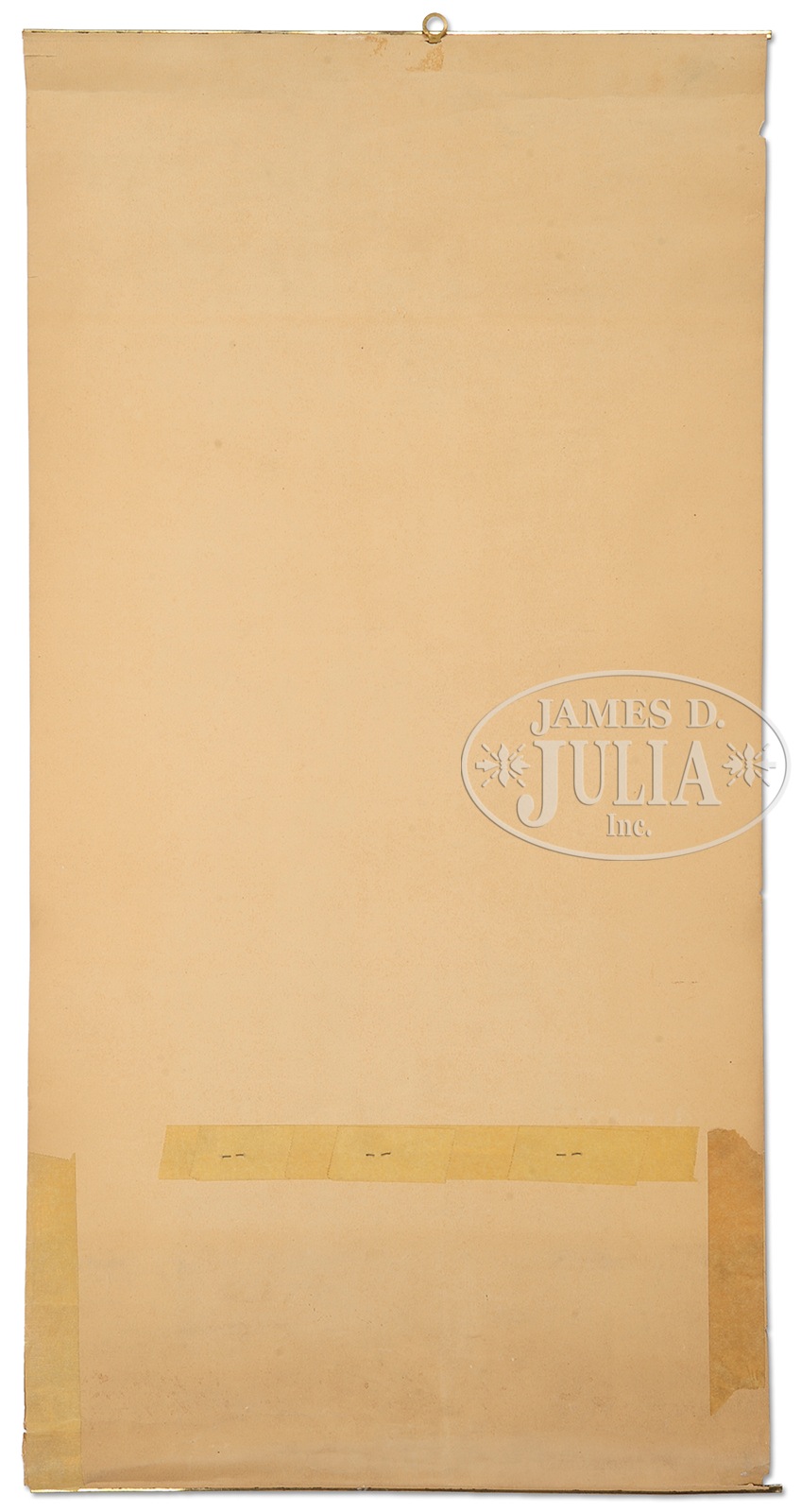 SCARCE PETERS CARTRIDGE 1919 CALENDAR.Captioned “Hurrah! You Got Him!” Pictures husband and wife hunting team on a mountainous rocky outcropping with the man with his arms raised above him cheering on his wife kneeling next to him who just bagged an unknown prize out of the viewing frame. Retains date pad starting with March and both top and bottom bands. SIZE: 27” h x 14” w. CONDITION: Field is generally very good with a couple minor scuffs. Calendar exhibits various horizontal roll creases (which have been reinforced on the reverse with masking tape) with a couple minor tears and margin nibbles. 48382-3 (1,500-2,000) – Lot 2239 Auction: Advertising, Toy & Doll - Spring 2015 Please Note: All prices include the hammer price plus the buyer’s premium, which is paid by the buyer as part of the purchase price. The prices noted here after the auction are considered unofficial and do not become official until after the 46th day. |
