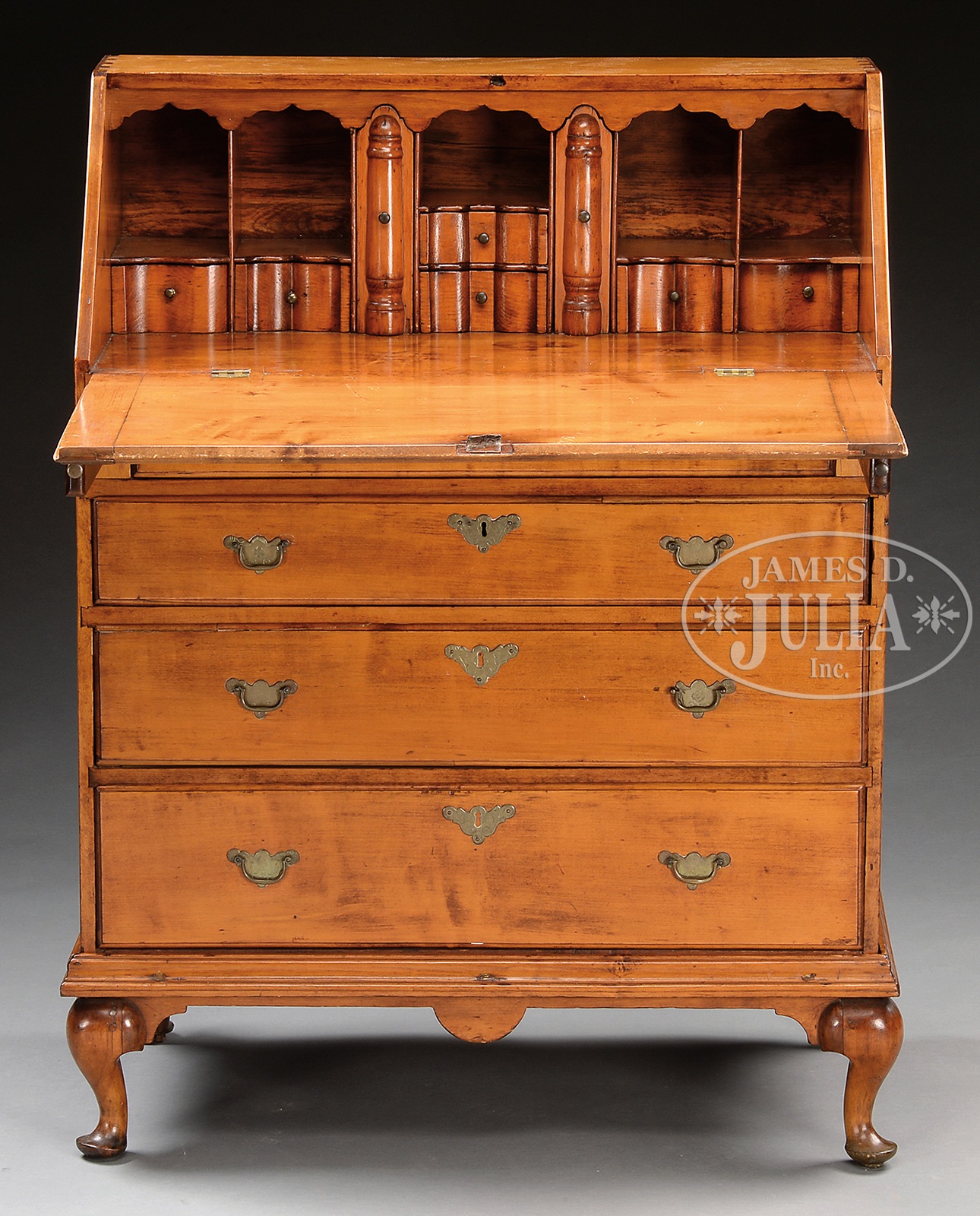 NEW HAMPSHIRE QUEEN ANNE MAPLE SLANT LID DESK ON FRAME.