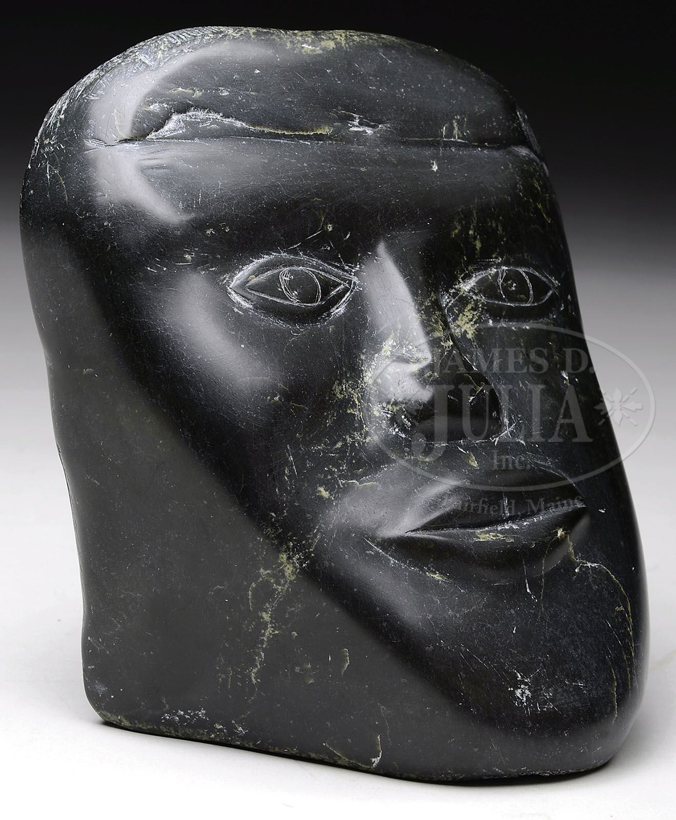 INUIT HARDSTONE CARVING, LATE 20TH CENTURY, CANADA. Inuit hardstone carving of a human image. SIZE: 6” t x 5” w. CONDITION: Natural wear to stone. 9-90964 (250-350)