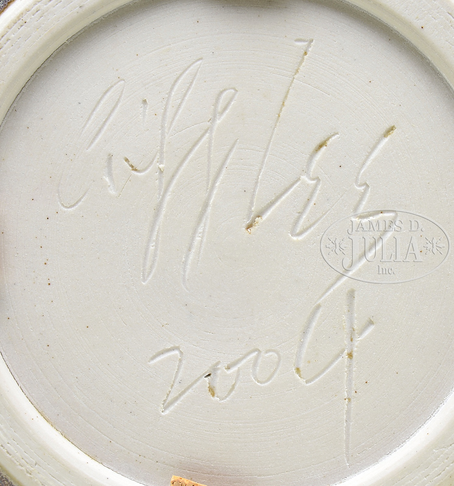 CLIFF LEE PORCELAIN VASE.Cliff Lee, (b. 1951). Vase in ovoid form tapering to a short narrow neck resembling a stem. Body finished with a glaze made to resemble bronze. Signed “Cliff Lee 2004″ on the underside. Accompanied by a wooden stand. SIZE: 12” h. CONDITION: Very good. 49818-51 (400-500) – Lot 2357