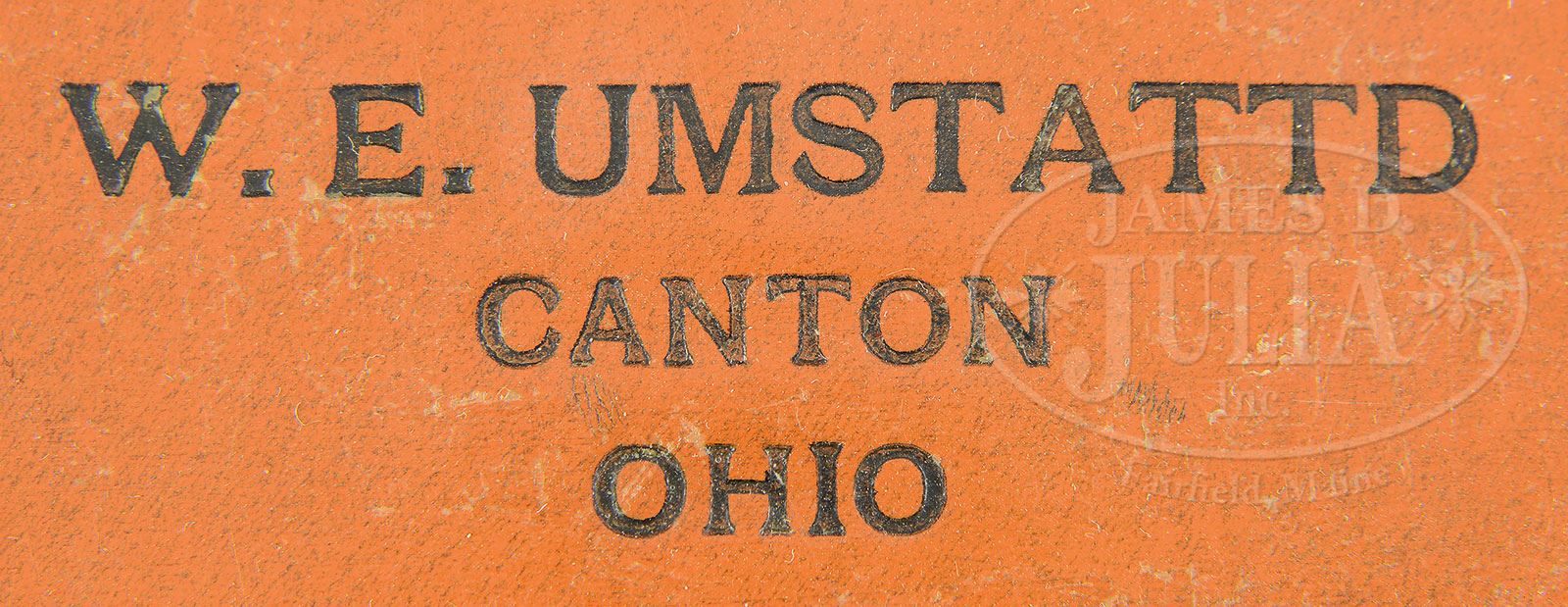*WINCHESTER MODEL 21 TOURNAMENT GRADE SKEET SCROLL ENGRAVED RESEMBLING CHRYSLER GUN WITH CASE.SN 3107. Cal. 12 ga. 2-3/4″ Chambers. 26″ Bbls marked “Skeet 1” and “Skeet 2” are also marked “WINCHESTER 12 GAUGE” on left side. Bottom of bbls and water table have all correct markings. Standard action features non-automatic safety and blued selective single trigger. Action is engraved with full coverage medium scroll resembling that on the famed Walter Chrysler Model 21 used in early Winchester advertising for the Model 21. Trigger plate is marked “TOURNAMENT SKEET”. Trigger guard bow is engraved with initials “W E U” as specified on orig work sheet. Nicely flame figured American walnut straight grip buttstock measures 14″ over checkered wood butt. Point pattern checkering with beaded borders is at grip. Side panels are also checkered. Matching beavertail ejector forend is not reinforced. Sides of forend iron are engraved with small squares. Bore diameter: left-.729, right -.729. Bore restrictions: left -.011 (skeet 2), right -.005 (skeet 1). Minimum wall thickness: left -.035, right -.032. Drop at heel: 1-7/8″, drop at comb: 1-1/2″. Weight: 7 lbs. 3 oz. LOP: 14″. Abercrombie & Fitch “VC” case is embossed “W.E. Umstattd Canton, Ohio” on top. Case is lined in burgundy cloth and contains a pair of 12 ga. snap caps, and a 25 Straight Winchester Skeet patch. PROVENANCE: Estate Collection of Lewis & Leyton Yearout. Copy of orig worksheet. Owners notes. Cody Firearms Museum research request for this SN. Letter regarding this gun from U. S. Repeating Arms Co. 1925 Winchester catalog showing the Walter Chrysler gun. Info on Timkin Roller Bearings. Orig owner of this gun, W. E. Umstattd, was president of Timkin Roller Bearings. CONDITION: Excellent, as refurbished. Bbls retain nearly all of a fine quality re-blue. Action retains nearly all of a re-blue done subsequent to new engraving. Stocks retain nearly all of a reddish oil finish, checkering slightly worn. Although SN on forend iron matches action, engraving does not. Bores are excellent. Action is tight. Ejectors are in time. Trigger works. Case is very good with a number of scuffs, one corner missing. One side of handle detached. Interior cloth is fine with numerous rubs and marks from contact with gun. 4-53969 MGM145 (6,000-8,000) – Lot 2360 Click here to view provenance