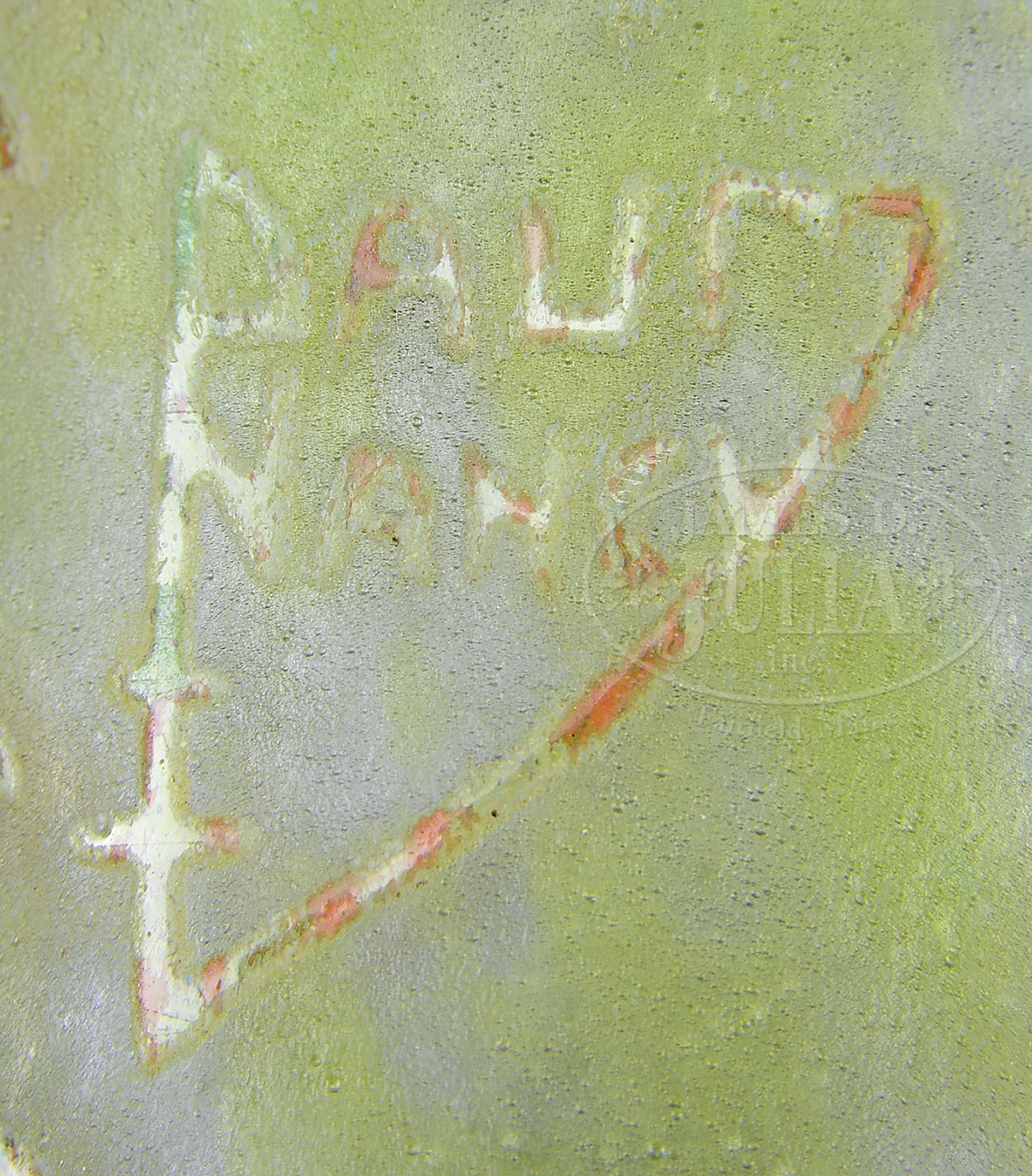 DAUM NANCY BLACKBERRY VASE.Daum tumbler vase has cameo purple blackberries with vitrified leaves and stems of brown, orange and green set against an acid-textured background of yellow and clear mottled glass. Signed in cameo on the side of vase “Daum Nancy” with cross of Lorraine. SIZE: 5″ t. PROVENANCE: From an Unreserved Texas Collection. CONDITION: Very good to excellent. 50006-61 (800-1,200) – Lot 2379
