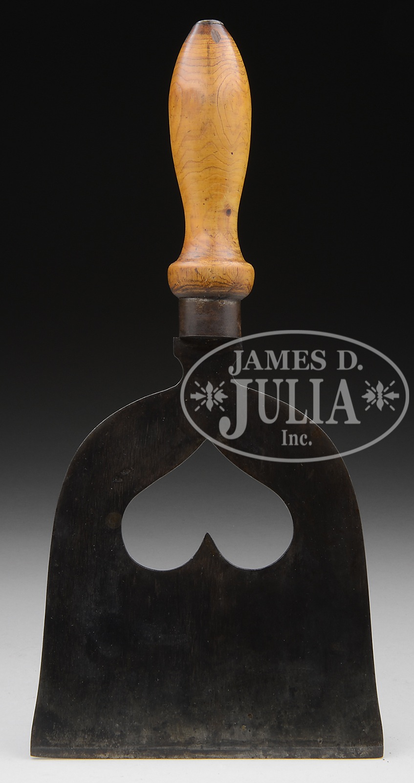 Early 19th Century American. The forged iron blade with inverted pierced heart joined to an iron ferrule mounted to a turned ash handle. CONDITION: Original surfaces with fine patina in excellent untouched condition. 49140-85 (400-800) – Lot 2684