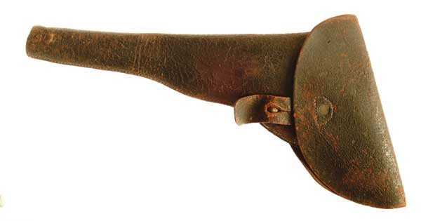 FLAP HOLSTER FOR 1860 ARMY REVOLVER. CONDITION: Much cracking overall but most of the finish remains, the seam is weak but still sewn. 4-47462 FS235 (100-300)