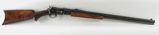 COLT MEDIUM FRAME LIGHTNING RIFLE. CAL. 38 WCF. Standard grade rifle with 26″ oct. bbl, full magazine, replacement checkered forearm and checkered pistol grip stock with crescent steel buttplate. Replacement front sight with a semi-buckhorn orig. rear sight. SN 17380 CONDITION: About good. Metal retains 65-75% plum-blue. The aforementioned replacement wood has most of an amateur finish. Stock has a repaired crack in the wrist. Strong bright bore with light pitting. 4-45768 Z222 (400-700)