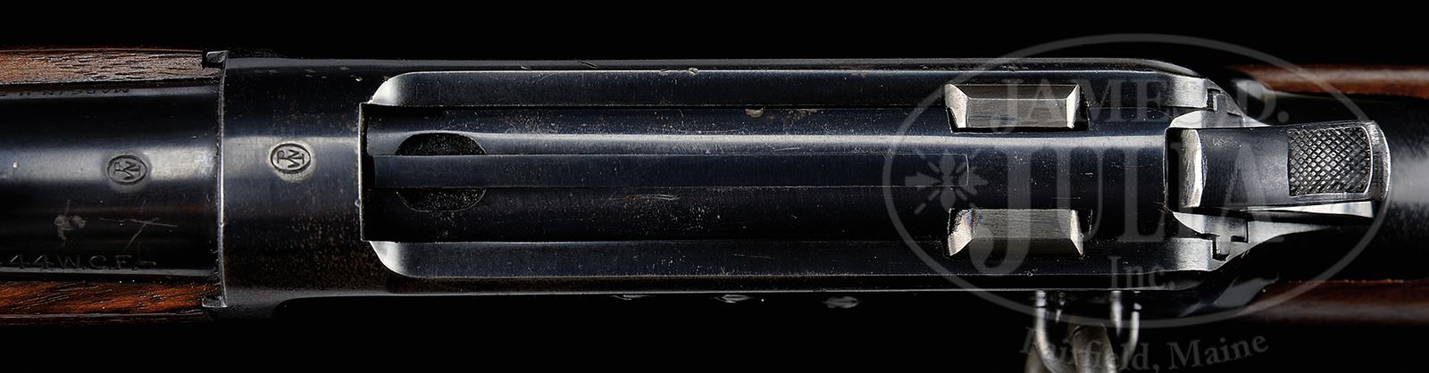 *WINCHESTER MODEL 1892 TRAPPER CARBINE.SN 945056. Cal. 44-40. 16″ bbl, blue finish, straight grain walnut stocks. PROVENANCE: The Estate Collection of Phil A. Bleakney, Jr. CONDITION: Very good. Bbl and magazine tube retain 80% blue with some thinning toward muzzle and a few handling scratches. Front bbl band retains 90% blue, rear bbl band retain 40% blue. Bore is bright with strong rifling. Receiver retains 60% blue with carry wear on the bottom and left side. Saddle ring wear on left side. Slight handling marks overall. Lever retains 80% blue. Most of wear is on ring. Hammer retains 80% blue with some scratches on side. Stocks are full sized and very good with only slight handling marks overall. Buttplate shows 20% blue with wear on heel and toe. A fine example of a Winchester Trapper Carbine in way above average condition for one of these guns. Also, a very desirable bbl length. 49059-38 TEP C&R (8,000-12,000) – Lot 3076