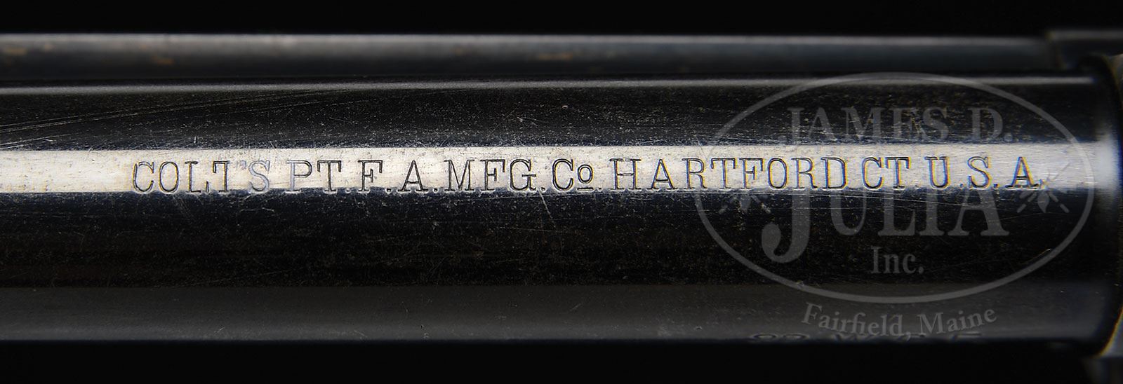 James D. Julia Auctioneers complies with all federal laws and regulations (Please review our Ivory Position Statement): As per the President’s Executive Order of February 2014, this item with its ivory is legal to sell and buy provided there is an ESA “Antique Certification” document proving the age. You must purchase an ESA in order to take possession of the ivory. If you wish to acquire the ivory after you purchase this gun, you must hire John Sexton, who is an independent consultant with the appropriate qualifications to prepare ESA certifications accepted by government agencies. John’s address is: 1962 Portage Landing North, North Palm Beach, FL 33408. ESA statements prepared by John Sexton can be acquired for a cost of $1,500.00/each. It is the buyer’s responsibility to make payment to John for the ESA statements. The documents are prepared by John and not by James D. Julia Auctioneers. Once the ESA statement is prepared and provided to Julia’s, you can have the ivory mounts. Be sure to keep a copy of your ESA certificate for your records also. THIS GUN IS BEING SOLD WITHOUT THE IVORY MOUNTS. YOU WILL NOT RECEIVE THE IVORY AT THE TIME OF YOUR PURCHASE. IF YOU WISH TO ACQUIRE THE IVORY ITEMS, YOU MUST PURCHASE AN ESA “ANTIQUE EXEMPTION” CERTIFICATE. NO EXCEPTIONS! *COLT BISLEY FLAT TOP TARGET REVOLVER, INSCRIBED R.F. ENEWOLD, RENO, NEVADA.SN 316151. 32/20 Cal. All blue finish with 7-1/2″ bbl, red dot target front sight in a rectangular base with 1-line block letter address and the left side marked “32 WCF”. Matching SN 316151 is found on bottom of frame, trigger guard and backstrap. Left side of frame has 2-line, 3-patent dates and rampant Colt in broken circle. Frame is flat top style with dovetailed fixed rear sight. Screws & trigger are fire blued. Mounted with 2-pc ivory grips. Accompanied by a Colt factory letter which identifies this revolver in caliber 32/20 with 7-1/2″ bbl, blue finish, stocks not listed, target or flat top, Lyman sight, sold to Geo. Tritch & Co., Denver, CO and shipped to W. L. Lucas address not listed on April 14, 1911 in a 1-gun shipment. Bbl does not as noted state “(BISLEY MODEL)” which is most often seen on production model target models after about SN 161,000. The grip frame is stamped in a cartouche “R.F. ENEWOLD” whose name is seen on other Colt products in the early 20th century. Robert F. Enewold we believe died quite recently at over 100 years of age. We don’t know much about his gunsmithing other than most of it appears to be mid 19th century and most likely he was responsible for the ivory stocks, king patented adjustable rear sight and more recent bbl without “(BISLEY MODEL)” markings. According to Colt Peacemaker Encyclopedia by Keith Cochran, John Parsons compiled from careful examination of Colt shipping records that there were 977 Target Model Bisley revolvers produced in the period 1894-1913 of which only 131 are listed in 32-20 caliber. PROVENANCE: Chris Anderson, Carson City, NV. Lewis Yearout 1968. Estate Collection of Lewis & Leyton Yearout. CONDITION: Very fine overall retaining 70% thinning blue finish on bbl, frame and cyl. Trigger guard and backstrap retain over 40% blue finish with reductions on either side of grip strap where gun would have been held, remainder of gun is gray and cyl shows drag line as can be seen in photos. 2-pc ivory stocks fit gun fairly well with good aged patina. Mechanically gun functions well with bright shiny bore. 4-53892 (4,000-6,000) – Lot 3116 Click here to view provenance