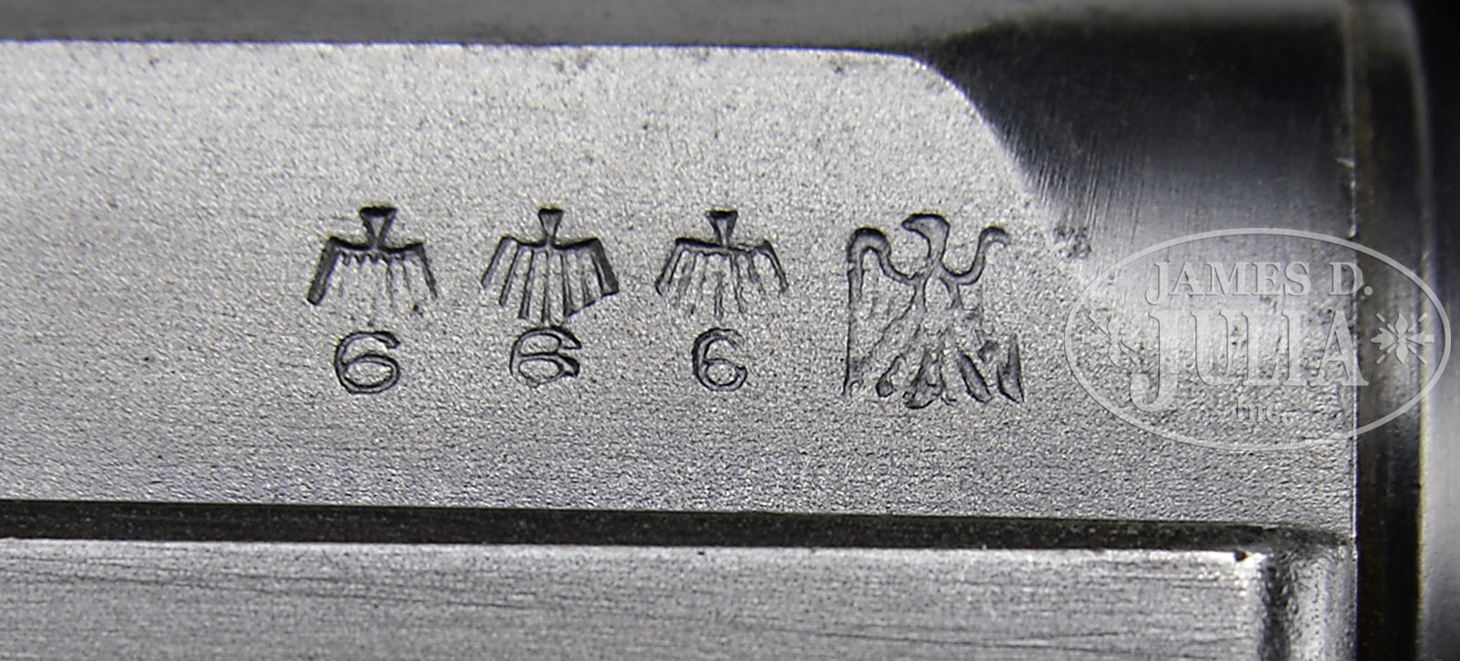 *◊ RARE SIMSON S CODE LUGER.SN 1888a. 4″ 9mm bbl with 4-digit SN on bottom. S on center toggle link (code for Simson manufacture). Eagle/6 proofs on almost all parts. All numbered parts are matching down to the checkered walnut grips. Proper Eagle/6 proofed Simson aluminum bottom magazine with S on bottom and no numbers. The serial number, 1888a, is the highest recorded Simson number. This gun is featured on pp. 467, 477, 631 and 723 of The Borchardt & Luger Automatic Pistols by Joachim Gortz & Dr. Geoffrey Sturgess. PROVENANCE: Collection of Dr. Geoffrey Sturgess. CONDITION: Excellent. Retaining 98% proper era arsenal finish. Straw is 95% with areas of light corrosion. Bore is bright with light frosting. Grips are lightly worn with minor dings and dents to checkering and some wood grain showing. Magazine is excellent showing little wear. Mechanics are excellent. 4-52947 BWS96 (3,000-4,500) – Lot 3120