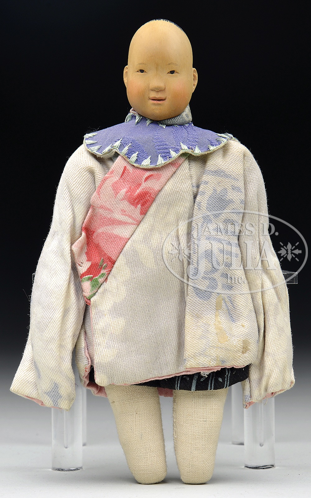 DOOR OF HOPE CHILD.Desirable child doll with wooden peg head and molded & painted features, cloth body wearing original clothing. SIZE: 7″ t (18cm). CONDITION: Overall good with some fading. 1-14058 (600-900) – Lot 3175 Auction: Advertising, Toy & Doll - Spring 2014 Please Note: All prices include the hammer price plus the buyer’s premium, which is paid by the buyer as part of the purchase price. The prices noted here after the auction are considered unofficial and do not become official until after the 46th day. |
