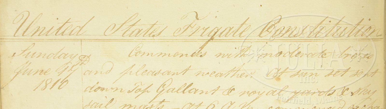 EXTREMELY RARE AND IMPORTANT OFFICIAL 1810 NAVY LOG FROM UNITED STATES FRIGATE “PRESIDENT” AND THE “U.S.S. CONSTITUTION”, “OLD IRONSIDES”.