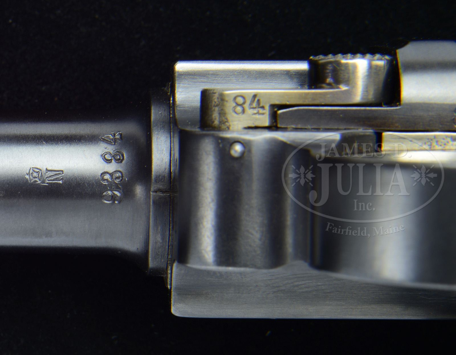 *◊ UNIQUE DWM COMMERCIAL 12″ BARREL LUGER RIG.SN 9384. 12″ 30 Cal. bbl that is matching numbered and Crown/N proofed. “DWM” scroll on center toggle link. 100m/200m rear Navy style sight. Crown/N proof on left receiver. “GERMANY” marked on front of right frame rail. Checkered wood grips. All numbered parts on gun are matching. Imperial proofed wood bottom magazine. With unique custom tan leather scabbard holding a commercial Navy stock that is attached to a custom tan leather holster with tan leather straps and buckles and extra magazine pouch. Stock has Navy Crown/M proofed metal disk and is missing the screws in the stock lug. Serial number on lug does not match the gun. Holster stock combination is well made and of the period and does not appear to have any identifying marks. This gun is featured on p. 532 of Dr. Geoffrey Sturgess’ The Borchardt & Luger Automatic Pistols. PROVENANCE: Collection of Dr. Geoffrey Sturgess. CONDITION: Excellent retaining 98% orig blue and 97% orig straw. Bore is bright with light wear. Grips are very good with light wear and some chips in the checkering with a large chip in the left grip under the safety lever. Magazine has some minor chips in the wood bottom. Stock is excellent with minor wear. Leather on holster and scabbard is very nice with minor scuffs and cracks as are the straps and magazine pouch. Mechanics are excellent. 43475-64 BWS100 (6,000-10,000) – Lot 3609