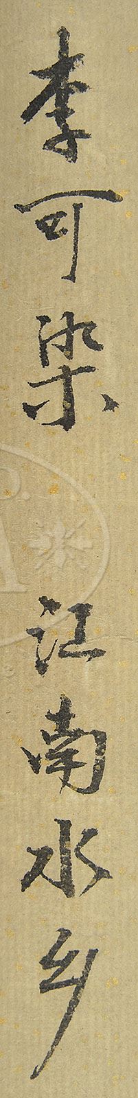HANGING SCROLL IN THE MANNER OF LI KE’RAN. China, ink and light colors on paper, depicting cottages in the misty rain, signed “Ke’ran,” with two seals SIZE: 12-1/2″ x 9-1/2″ CONDITION: Good, foxing to the mounts 9-91010 (700-900)