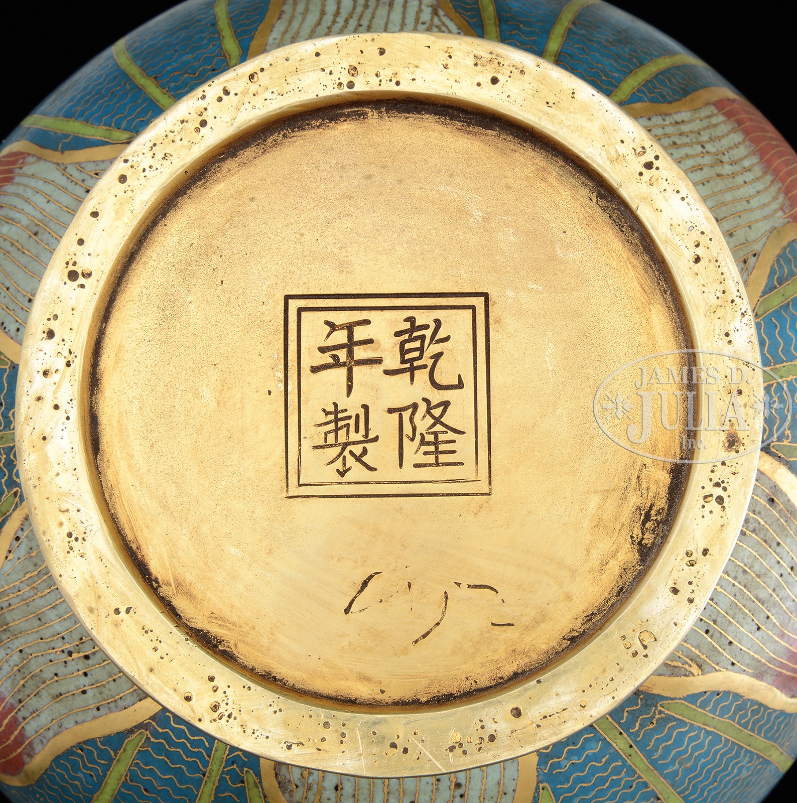 20th century, China. Each vase made in bottle form decorated with various elements of lotus around body ending at a garlic top. Undersides with incised four character Qianlong marks. SIZE: 14-3/4″ h. CONDITION: Very good. 50107-5 (1,200-1,500) – Lot 3648