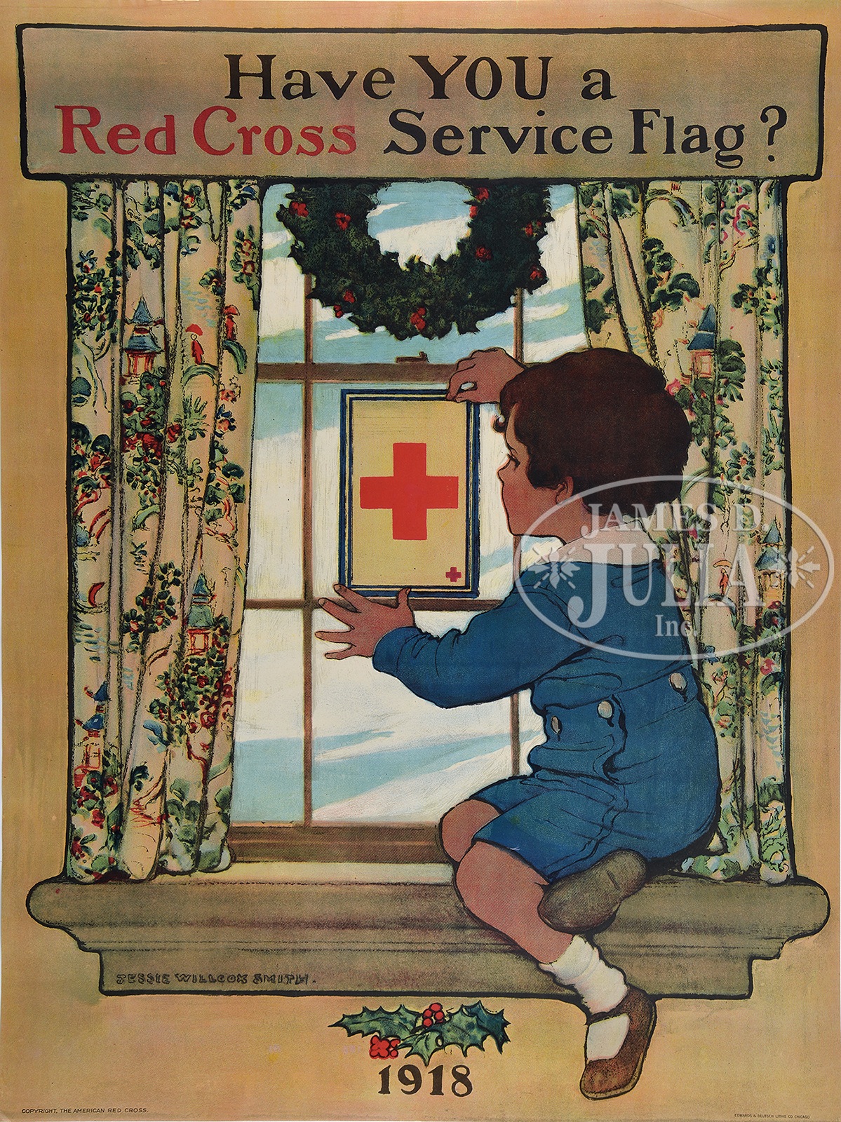 Lot includes: “Joan of Arc Saved France” by Haskell Coffin; “For Every Fighter a Woman Worker”; “Every Girl Pulling for Victory – Victory Girls United War Work Campaign” by Edward Penfield; “Save Coal”; “Help Them”; “Have YOU a Red Cross Service Flag – 1918″ (2); ” They Give Their Lives. Do You Lend Your Savings?”; “Second Liberty Loan of 1917”; “A Million Boys Behind a Million Fighters”; “Welcome Home Our Fighting Newton Heroes”; “Inasmuch as ye have done it unto one of the least of these”; “LEND! (10)”; “To-day Buy That Liberty Bond” (5 large & 3 small versions); “Have you Given? We Have”; “Join-All You Need is a Heart and a Dollar” (4); 2 Red Cross posters captioned “JOIN”; “Give” (2); “Buy Early” (2); “Free Storage of Liberty Bonds” (large & small versions); “Buy Liberty Bonds at Any Bank”; “Help Our Town Win This Flag”; “Eat More Cottage Cheese-You’ll Need Less Meat”; “Welcome Home”; “Your War Saving Pledge”; “buy War Savings Stamps”; “Second Liberty Loan of 1917”; “Third Liberty Loan Subscriber”; “Keep Them Smiling”; “Fire Prevention Day-Help Win the War”; 3 Atlas size maps of the Southern Pacific Railroad dated June 1875; Harvard medical degree; and 1888 etching of St. Ouen-Rouen cathedral in Northern France. SIZE: Ranges from 7″ w x 11″ h to 30″ w x 40″ h. CONDITION: Good to very good. 1-13760-7 (1,000-2,000) – Lot 3653