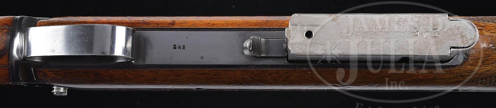 *◊ EXTREMELY RARE HOLEK AUTOMAT RIFLE CHAMBERED IN 8 MM.SN 245. Cal. 8mm x 57. Interesting tipping breech block (similar to ZB vz. 26/BREN MG) semi-automatic sporter developed by the Czech arms designer Emmanuel Holek (brother of Vaclan Holek) and manufactured in 1942, utilizing an under-barrel tapped gas recoil system, the weapon cocks by taking the front sling loop and pulling the gas system rearward thus disengaging and retracting the tipping bolt. This rifle was very advanced for its time, it is Czech proofed and is marked with Holek’s logo and “ORIGINAL HOLEK AUTOMAT” on the top receiver rear. The magazine (replacement) is in the white as are the bolt and extractor, period 2-pc sporter stock shows nice checkering at forend & wrist. PROVENANCE: Collection of Dr. Geoffrey Sturgess, ex-Visser collection. CONDITION: Very Fine. High polished blue is 98%, the rear dove-tail sight has been ground down at some point and 3-threaded holes are present on the right where a presumed tangent or target sight was probably added and later removed. Bore is very nice, shiny, stock shows some wear & a few minor scratches and dings. 43475-939 DW7 (3,500-5,500) – Lot 3710