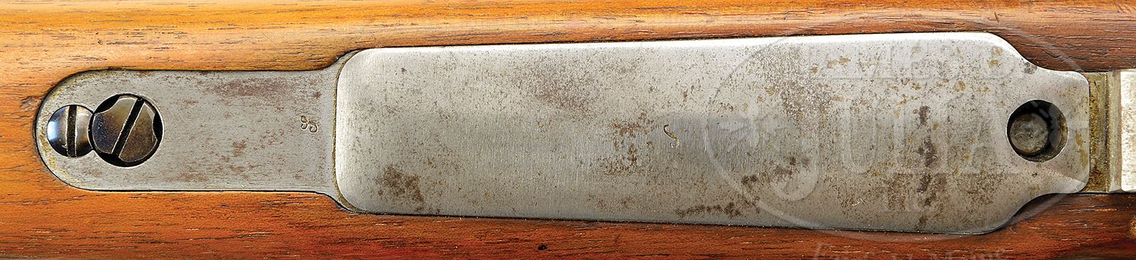 *◊ EXCEPTIONAL UNIQUE IN-THE-WHITE PROTOTYPE MAUSER 6.5MM SWEDISH K98k RIFLE.SN 3. Cal. 6.5 x 55 mm Swedish Mauser . K98k prototype manufactured by Mauser for Swedish trials. All metal parts are in the white with the exception of springs and screws. No maker’s logos or other identifying markings. Bolt handle marked crown/N. Some small parts marked with small script “s”. Left receiver is stamped with commercial crown/N proof and “St.m.G” (Stahlmantel Geschoss – steel jacket bullet. Nice K98 configured walnut stock is very fine and also unmarked. Essentially, unique snapshot of what a bare K98k production rifle looks like prior to factory bluing and marking but uniquely in 6.5 x 55 Swedish Mauser. PROVENANCE: Collection of Dr. Geoffrey Sturgess, ex Leslie Field collection. CONDITION: Bore has strong lands and grooves, but frosted. Unfinished metal parts are a mix of dull and high polish with occasional areas of light frosting patina. Stock in overall excellent condition with only very slight handling marks. 43475-883 DW53 (3,000-6,000) – Lot 3717