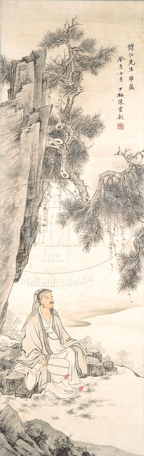 THREE HANGING SCROLLS. China. 1) In the manner of Chen Shaomei, ink and light colors on paper, depicting a recluse contemplating in a landscape with pines and rocks, dedicated to Mr. Youren, signed “Shaomei Chen Yunzhang,” dated “the tenth month of guiwei year,” with one seal. 2) Loose painting, in the manner of Dong Shouping, ink on paper, bamboo, inscribed, signed, with two seals. 3) Loose painting, in the manner of Huang Binhong, ink and light colors on paper, depicting landscape with recluses in a pavilion, inscribed, signed “Binhong,” with two seals SIZE: 1) 46-1/2″ x 15″ 2) 25″ x 16″ 3) 27″ x 13-1/2″ CONDITION: 1) Surface grime. 2) Oil stains, tears & creases. 3) Crease, otherwise in good condition 7-74491 (300-500)