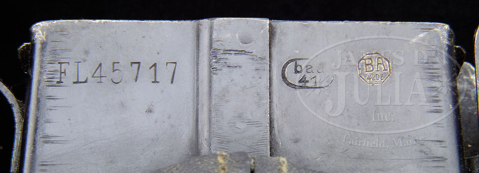 RARE PAIR OF EMPTY CASE CATCHERS FOR MG15 MACHINE GUN.One canvas (Hülsensack alte Art) and one rubber (Hülsensack neue Art) empty case catchers for MG15. Both have blued metal flange/latch that attaches to gun ejection port. Tan canvas bag is held open by a large internal circular spring, coin purse style closure at bottom opens to empty spent brass, stitched leather reinforcements where canvas attaches to metal fittings. Metal flange has “HK” in circle and “HS” in circle followed by an eagle/2 Luftwaffe acceptance mark. “Rubber Football” new model case container attached to other example has zipper on bottom with leather lanyard to release fired shells. Metal catcher is marked “FL45717” next to “baa/41” in a circle and “BA/4202” in an octagon. PROVENANCE: Collection of Dr. Geoffrey Sturgess. CONDITION: Fine, both metal catchers retain 98% orig finish with some minor scratches and corrosion. Gray rubber on “Football” is excellent with little wear, leather lanyard on zipper is worn and cracked. Canvas on old model catcher is stained from internal spring, leather has normal wear with orig color and stitching. Coin purse closure has patina with minor wear. 43475-1081 BWS (2,000-3,000) – Lot 3797