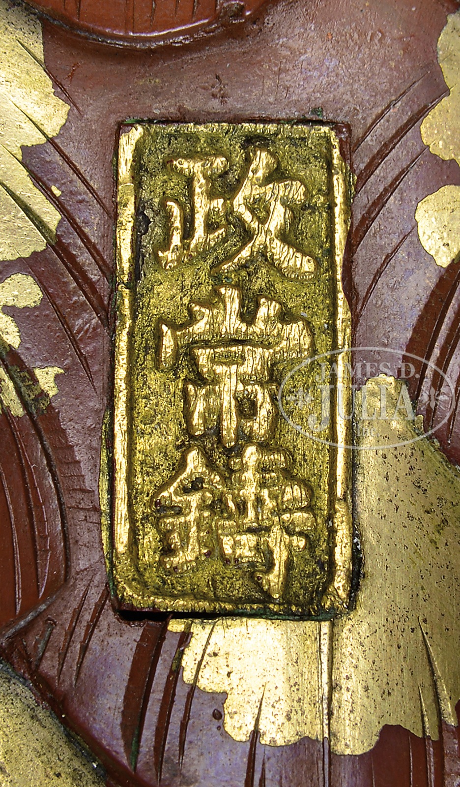 MASATSUNE KIMURA (1827-1890, Japanese) MIXED METAL STUDY OF A PHEASANT.Meiji Period (1868-1912), Japan. Finely sculpted and chased pheasant in gold, silver, shakudo and shibuichi. Accompanied by fitted hardwood stand. Artist signed on the bird’s stomach within a cartouche on the feathers. SIZE: 35″ l. CONDITION: Very good with original surfaces. 9-93598 (3,000-5,000) – Lot 4132
