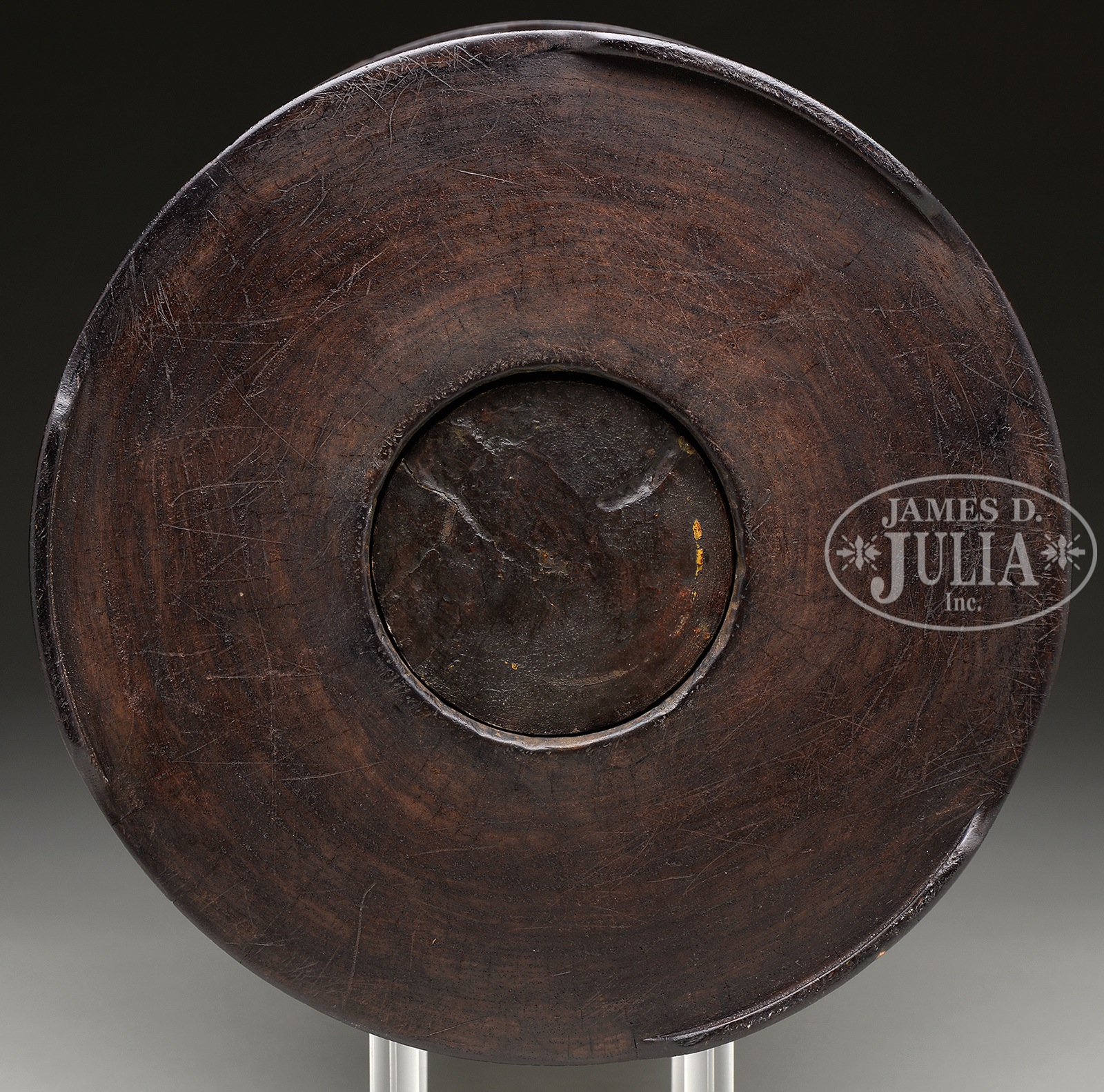 ZITAN BRUSH POT.18th/19th century, China. Finely grained wood, cylindrical form, with reeded top and bottom. SIZE: 9″ h x 9-3/4″ dia. PROVENANCE: From an important American collection. CONDITION: Very good. 7-74878 (8,000-10,000) – Lot 4186