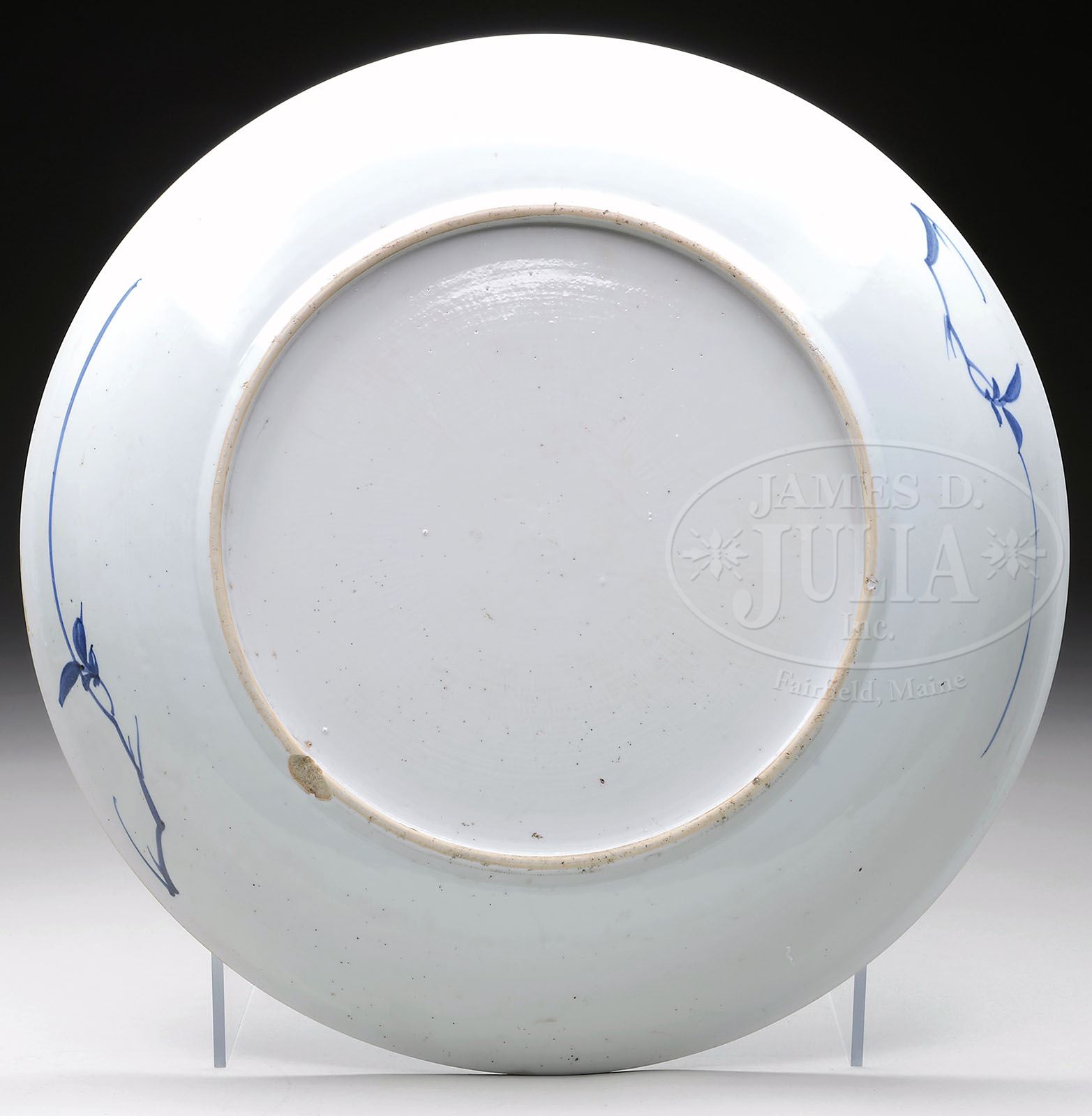 PORCELAIN PLATE. K’ang Hsi period (1662-1722), China. Underglaze blue decoration of flowers. SIZE: 15-1/8″ dia. CONDITION: Chip to footrim. 7-74537 (300-500)