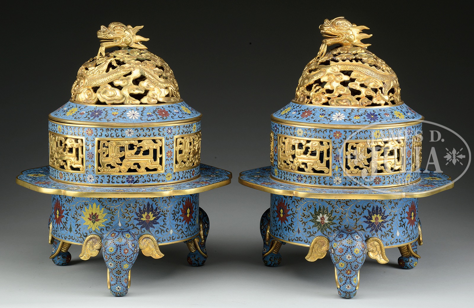 PAIR OF CLOISONNE ENAMEL BRAZIERS.