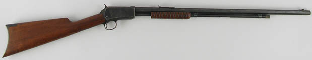 *WINCHESTER MODEL 1890 PUMP RIFLE. CAL. 22WRF. 2nd Model, standard grade with 24″ oct. bbl, 3/4 magazine, crescent butt. SN 260785 CONDITION Very good to excellent. Retains about 95% bright orig. blue overall, light pitting on the bbl, dirty and in need of cleaning, good wood with about 95% varnish and mildew. Strong bright bore, needs cleaning. 4-45840 (500-1000)