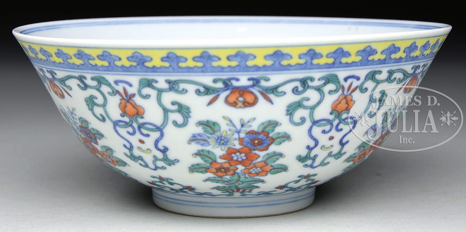 TOU TSAI PORCELAIN BOWL.Ch’ien Lung mark and possibly of the period, China. Decoration of floral bouquets. SIZE: 6″ dia. CONDITION: Very good. 9-91487 (1,000-1,500) – Lot 4300