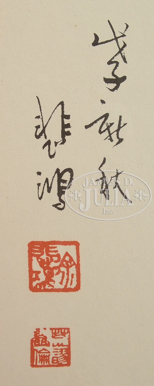 PAIR OF FRAMED HORSE PRINTS.China, each depicting a galloping horse, signed “Beihong,” with two seals, framed and glazed. SIZE: 28” x 15 ½” CONDITION: Good condition. 9-93590 (800-1,200) – Lot 4552