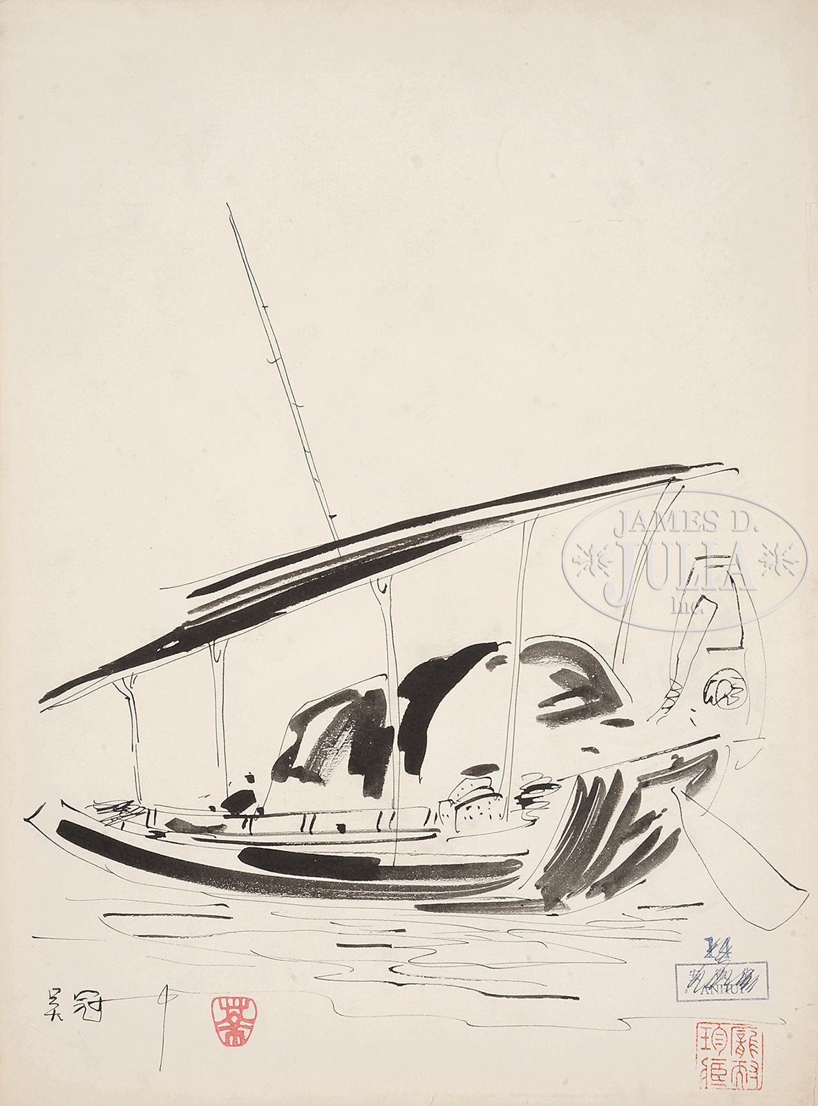 SIX INK SKETCHES ATTRIBUTED TO WU GUANZHONG (1919-2010).China, each signed “Wu Guanzhong,” with one seal, and one collector’s seal “Pang Nai.” SIZE: 16 ½” x 12 ¼” PROVENANCE: Reputedly, formerly the collection of Alice Boney. CONDITION: Minor stain, torn edges. 9-91232 (900-1,200) – Lot 4553