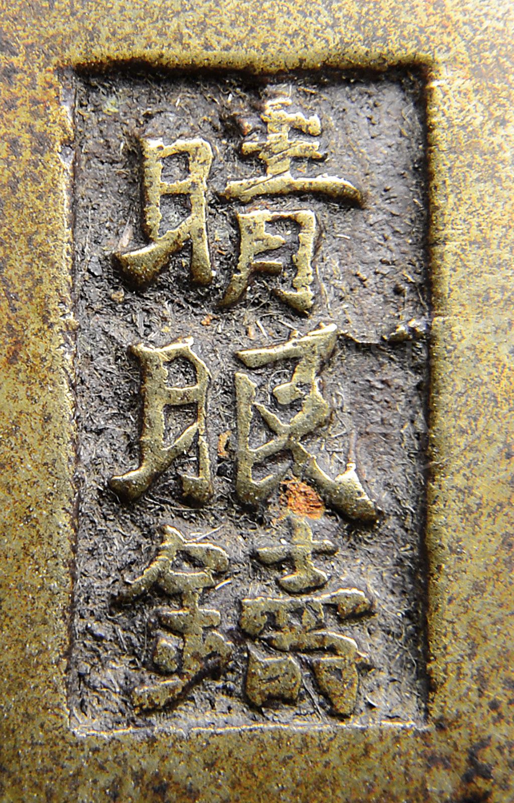BRONZE CENSER. 19th century, Japan. Bronze censer having a band of champleve enamel, tripod base, and handles. Marked on base. SIZE: 6-3/4” t x 5-1/2” dia. PROVENANCE: The estate collection of Seta Chengrian. CONDITION: Very good, with a later added wooden cover, and old lead repair to leg. 9-91638 (400-600)