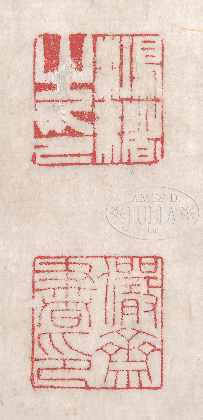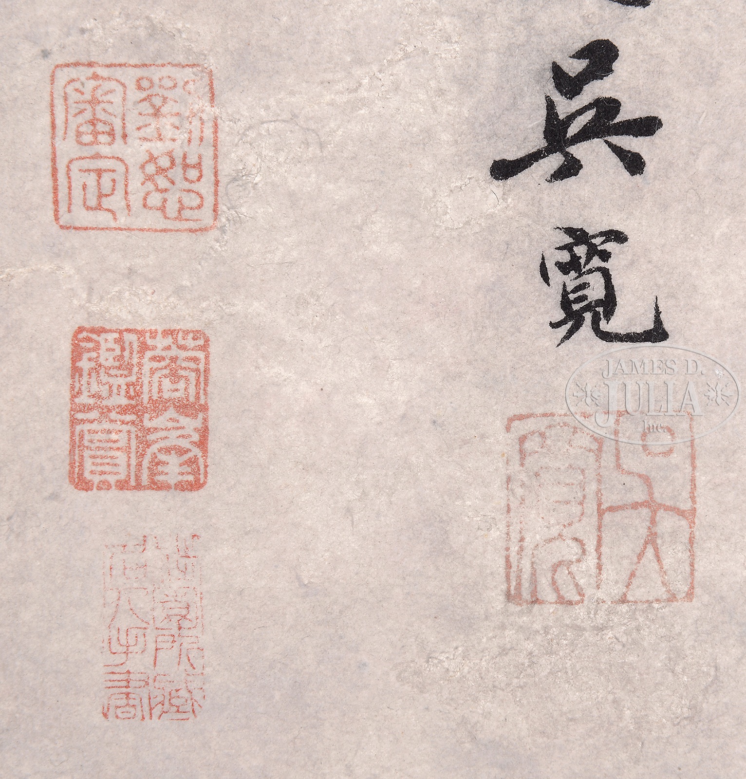 FOUR CALLIGRAPHY LEAVES.China, signed “Lu Shiren,” “Cheng Qinwang,” “Wu Guan,” and another, with seals. SIZE: sizes vary CONDITION: Good condition in general, minor losses. 9-91155 (500-700) – Lot 4567
