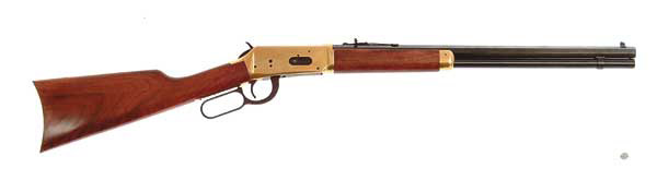 *WINCHESTER CENTENNIAL 66 COMMEMORATIVE CARBINE. Cal. 30-30. Carbine model with 20″ oct. bbl, open sights, full magazine, gold plated receiver, foreend cap and buttplate. Wood is nicely figured American walnut. Consecutively numbered to the 66 Centennial rifle elsewhere in this auction. SN 82429. CONDITION: Excellent. Appears to be unfired. No original box or papers. 4-46544 JR119 (300-500)