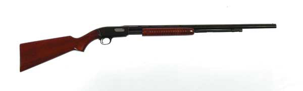 *WINCHESTER MODEL 61 SPECIAL ORDER PUMP RIFLE. Cal. 22 shot. Standard grade rifle with 24″ round bbl, factory special order Simmons ventilated rib with single silver bead. The proof marks on receiver and bbl are both stamped on the side indicating factory installation. Modestly figured uncheckered wood with flat bottom ribbed forearm and semi-pistol grip stock with checkered steel buttplate. The bbl is counter bored to .265″; 8″ down from the muzzle. The receiver has a shotgun style matted top. SN 51879. CONDITION: Excellent to new. Appears unfired, retaining virtually all its original factory finish to both metal and wood. Wood has one or two small bruises and minor handling and storage marks. Brilliant shiny bore. 4-46814 JR23 (2,000-3,500)