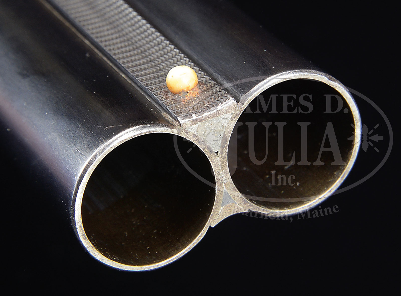 *LINDNER CHARLES DALY “SUPERIOR” GRADE BOXLOCK EJECTOR SHOTGUN.SN 2015. Cal. 12 ga. 2-3/4″ Chambers. 29″ Dovetailed bbls are engraved “Charles Daly Krupp Fluid Steel Barrels” in milled out portion of slightly raised, matted, game rib, twin ivory beads. Bbl flats are stamped with Imperial German proofs and with SN. “HAL” crossed pistol logos are on bottoms of bbls. Case hardened scallop backed boxlock action features non-automatic safety (SAFE inlaid in gold), pin type cocking indicators, hidden square crossbolt third fastener, and dbl triggers. Action is engraved with 40% coverage sprays and bursts of very well cut Germanic scroll within geometric borders. “Charles Daly” is on each side. Case hardened trigger guard with scroll on bow, has SN on tang. Nicely marbled and stump figured dense European walnut round knob pistol grip buttstock measures 14-1/4″ over black Decelerator pad. Side panels are nicely checkered and end in elongated drop points. Point pattern checkering is at grip. A vacant silver oval is on toe line. Matching splinter ejector forend has inset horn tip, and Deeley type release. Bore diameter: left -.726, right – .725. Bore restrictions: left – .017 (mod), right – .016 (mod). Wall thickness: left – .019, right – .026. Drop at heel: 2-11/16″, drop at comb: 1-11/16″. Neutral cast. Weight: 7 lbs. 11 oz. LOP: 14-1/4″. CONDITION: Very fine as partially refinished. Bbls retain what appears to be nearly all of their orig blue, but has most likely had some blue added. Action retains 60 – 70% orig case hardening color, strong where protected, with some loss due to flecks and patches of browning, mostly on fences, with some light pitting on left, silvered considerably on bottom from normal hand wear. Stocks retain nearly all of a hand rubbed oil finish over a few light marks. It appears that stock has been cracked through the wrist and repaired, checkering re-cut, and there is a 5/8″ x 1/8″ chip missing from left rear of forend wood. Bores are excellent. Action is tight. Ejectors are strong. Special Note: This item(s) contains plant or animal properties that may be covered by the Endangered Species Act (ESA). Please read the Conditions of Sale, section 15, for more information regarding the Endangered Species Act, and your responsibilities as a buyer. 51872-13 MGM (3,000-4,000) C&R; ESA – Lot 1694