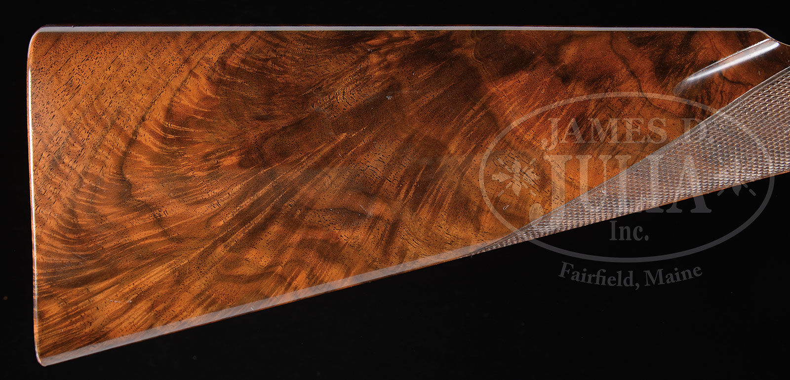 *EXTREMELY RARE 28 GAUGE WINCHESTER MODEL 21 DELUXE GRADE SHOTGUN WITH EXTRA 20 GAUGE BARRELS WITH FACTORY LETTER.SN 27544. Cal. 20 and 28 ga. 2-3/4″ Chambers. 26″ 28 Ga. and 28″ 20 ga. bbls are fitted with matted ribs. Sides of left bbls are marked “WINCHESTER” and with gauge and chamber information. Bbl flats are stamped with SNs, and Winchester proofs. Bottoms of bbls are stamped “WINCHESTER PROOF STEEL” and with chokes (skeet and skeet on 28 ga. and mod and full on 20 ga). Loops are stamped “1” 20 ga, and “2” 28 ga. Step down blued action with automatic safety and blued single selective trigger are marked with Winchester model, etc. on engine turned water table. Trigger plate is marked “DELUXE”. Very fine feather crotch figured American walnut straight grip buttstock measures 14-1/2″ over checkered wood butt. Point pattern checkering is at grip, and side panels are checkered. Matching beavertail forends are 80% checkered, have contrasting forend tips, typical J-spring and knurled secondary releases, and are stamped “1” and “2” on tips of irons. BBL set “1”: Bore diameter: left -.615, right – .615. Bore restrictions: left – .023 (mod), right – .012 (lt mod). Wall thickness: left – .026, right – .028. Drop at heel: 2-3/16″, drop at comb: 1-3/8″. Neutral cast. Weight: 6 lbs. 10 oz. LOP: 14-1/2″. BBL set “2”: Bore diameter: left -.557, right – .555. Bore restrictions: left – .021 (mod), right – .015 (mod). Wall thickness: left – .055, right – .057. Drop at heel: 2-1/4″, drop at comb: 1-3/8″. Neutral cast. Weight: 7 lbs. 4 oz. LOP: 14-1/2″. PROVENANCE: Factory letter indicating this gun was ordered in 1952 as a “custom deluxe skeet” with bbls and choking agreeing with current measurements. This gun was returned to Winchester in 1982 for re-stocking and refinishing (gun was originally pistol grip). Also included is 1982 repair order detailing all work to be performed. Prestigious and lifetime Parker and Winchester collection of Dr. Tom Bouwkamp. CONDITION: Excellent, as factory refurbished. Metal parts retain nearly all of their factory re-blue with slight silvering on edges. Buttstock and 20 ga forend retain essentially all of their orig factory finish. 28 ga forend refinished, and retains nearly all of that finish with a few light marks. Bores are excellent. Mechanically fine. 52170-22 MGM (25,000-35,000) C&R – Lot 1502 Click here to view provenance